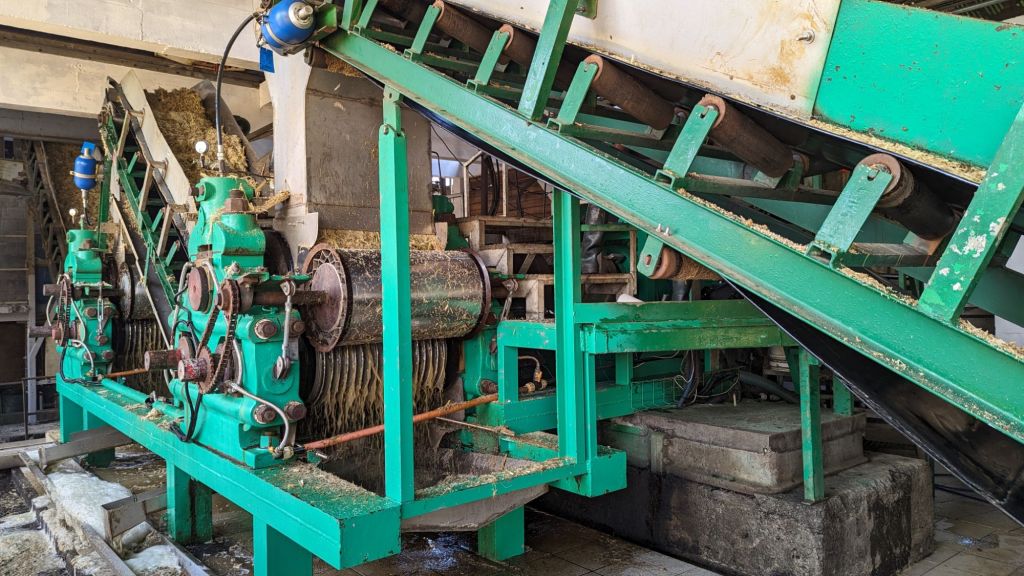 Résumé rapide, on sélectionne la canne que l’on veut suivant sa qualité. Ici la canne bleu pour son caractère et son arôme citronné, et la canne rouge pour son côté fruité bien plus savoureux. Une fois par an, on la récolte et la passe sous presse deux fois pour en tirer tous le jus. On garde la levure naturelle de la canne. On laisse fermenter le jus. Ensuite on le passe en distillation. Le résidu sec de la canne en sortie de presse alimente la machinerie locomotive de cette même presse. La vapeur est récupérée et réinjectée dans la colonne de distillation pour récupérer toute la saveur de la canne. Ensuite on fait vieillir en fut de chêne. De vin de France ou de Bourbon des États-Unis. Et paf, ça fait des Chocapic.