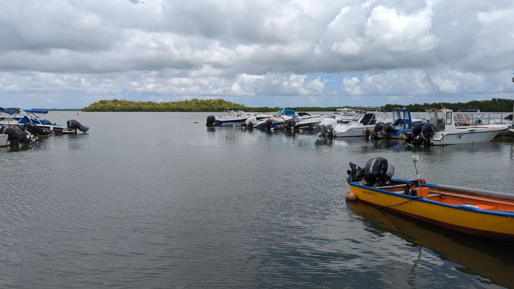 Encore un réveil sous la pluie ce dimanche matin 🙄. Et malheureusement, la météo annonce bien pire demain. Bon après, il fait quand même 29° et ce ne sont que des passages pluvieux. Donc on ne va pas non plus se plaindre. Mais je perds espoir de faire l’ascension du volcan. Comme la météo est incertaine, nous ne changeons pas d’île aujourd’hui. Direction le Nord de Grande Terre. Je m’appuie sur mon guide pour l’itinéraire. On commence par un passage à Vieux Bourg. Normalement on y prend une excursion en bateau pour passer dans la mangrove. Ça ne nous intéresse pas plus que ça. Du coup il n’y a pas grand chose à faire ici. Nous pouvons continuer notre route.