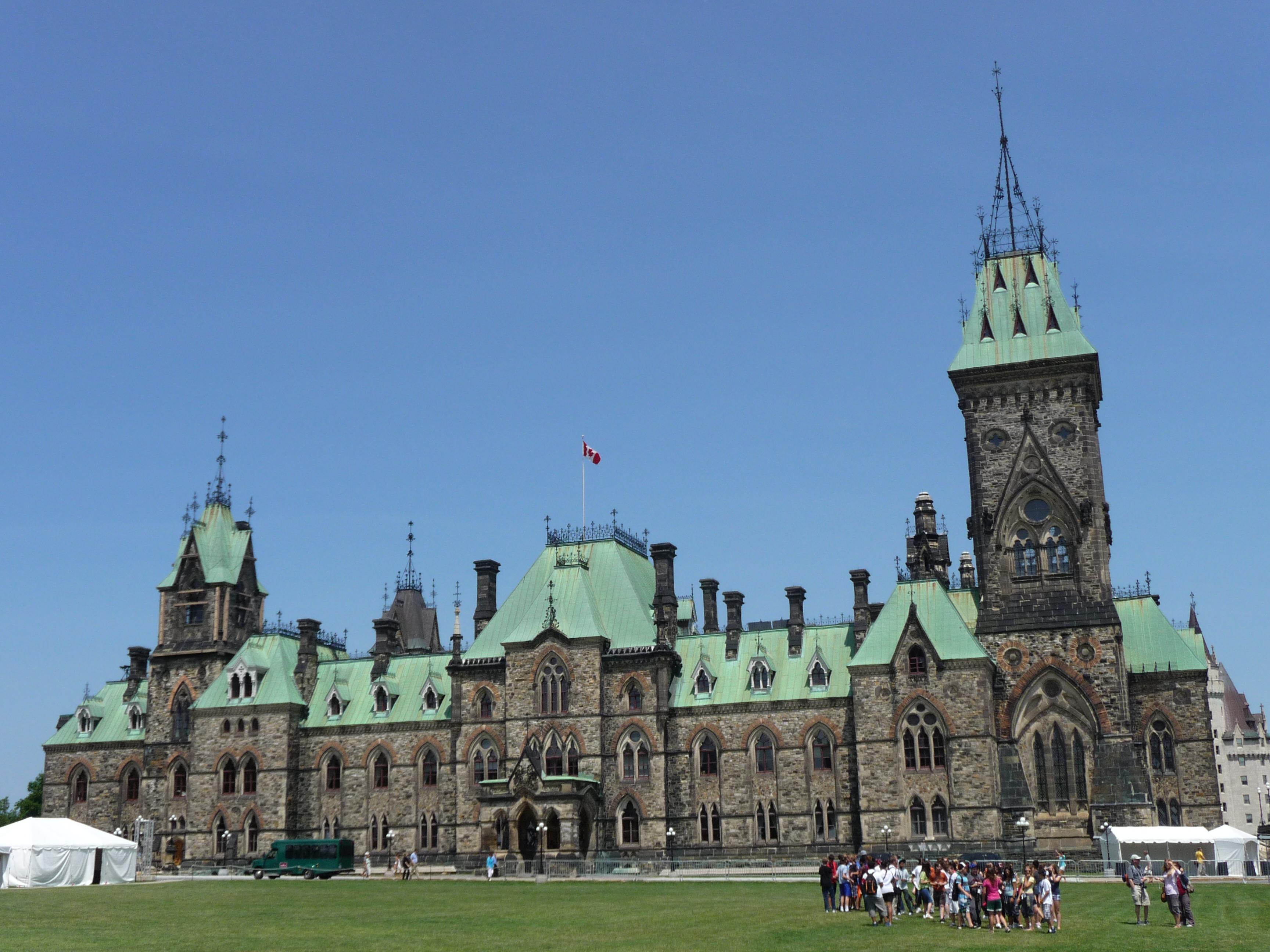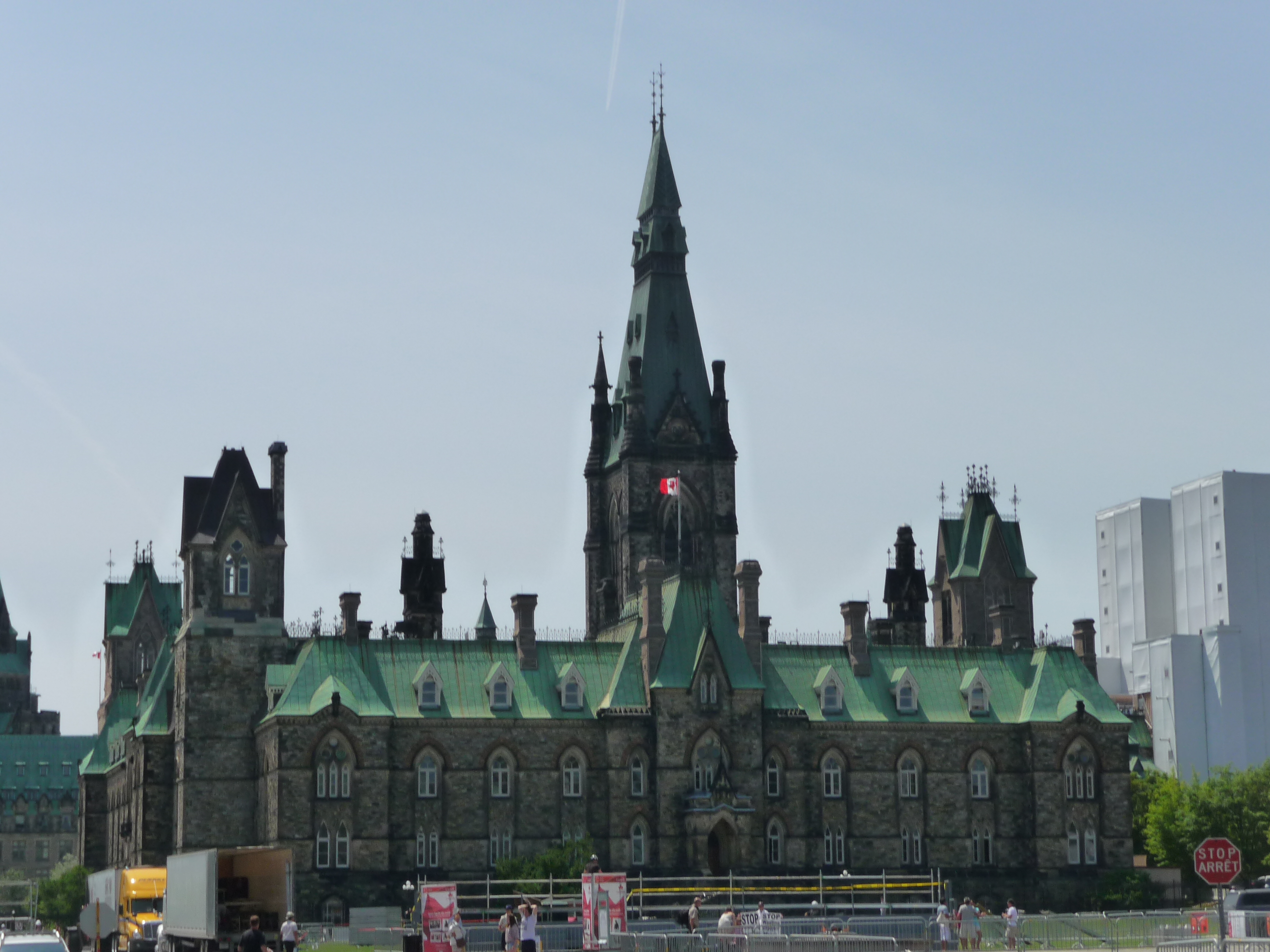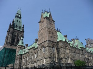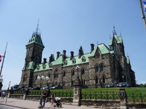 Après avoir hésité, notamment suite à la confidence du chauffeur au Novotel sur l’absence d’intérêt de cette ville, nous décidons de passer quand même par Ottawa. Effectivement, une fois sur place, on peut bien constater qu’il s’agit d’une ville administrative. Nous nous aidons donc du GPS pour trouver le parlement. Une fois sur place, nous nous garons sur une place à parkmetre. Ouf ! Car les parkings souterrains avec un char d’assault, c’est pas évident. Nous avons donc exactement 30 minutes pour visiter. Il ne nous en fallait pas plus.