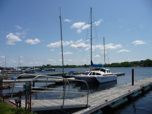 C’est en bouquinant ces papiers que nous avons repérés un restaurant dans la petite ville de Britt au bord d’une rivière. Nous sortons donc de l’autoroute pour nous rendre en ce lieu pas très loin de Sudbury. Bon ben en fait on y a rien trouvé. C’est une sorte de station de loisir au bord de l’eau où les Canadiens viennent passer le weekend en empruntant un bateau ou en louant une caravane. Ceci dit le cadre est magnifique et paisible. Loin de l’autoroute, au calme au milieu de la nature. Un petit store nous permettra quand même de trouver quelques stuff et un antimoustique. Nous profitons donc un peu du cadre avant de reprendre la route.