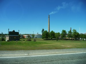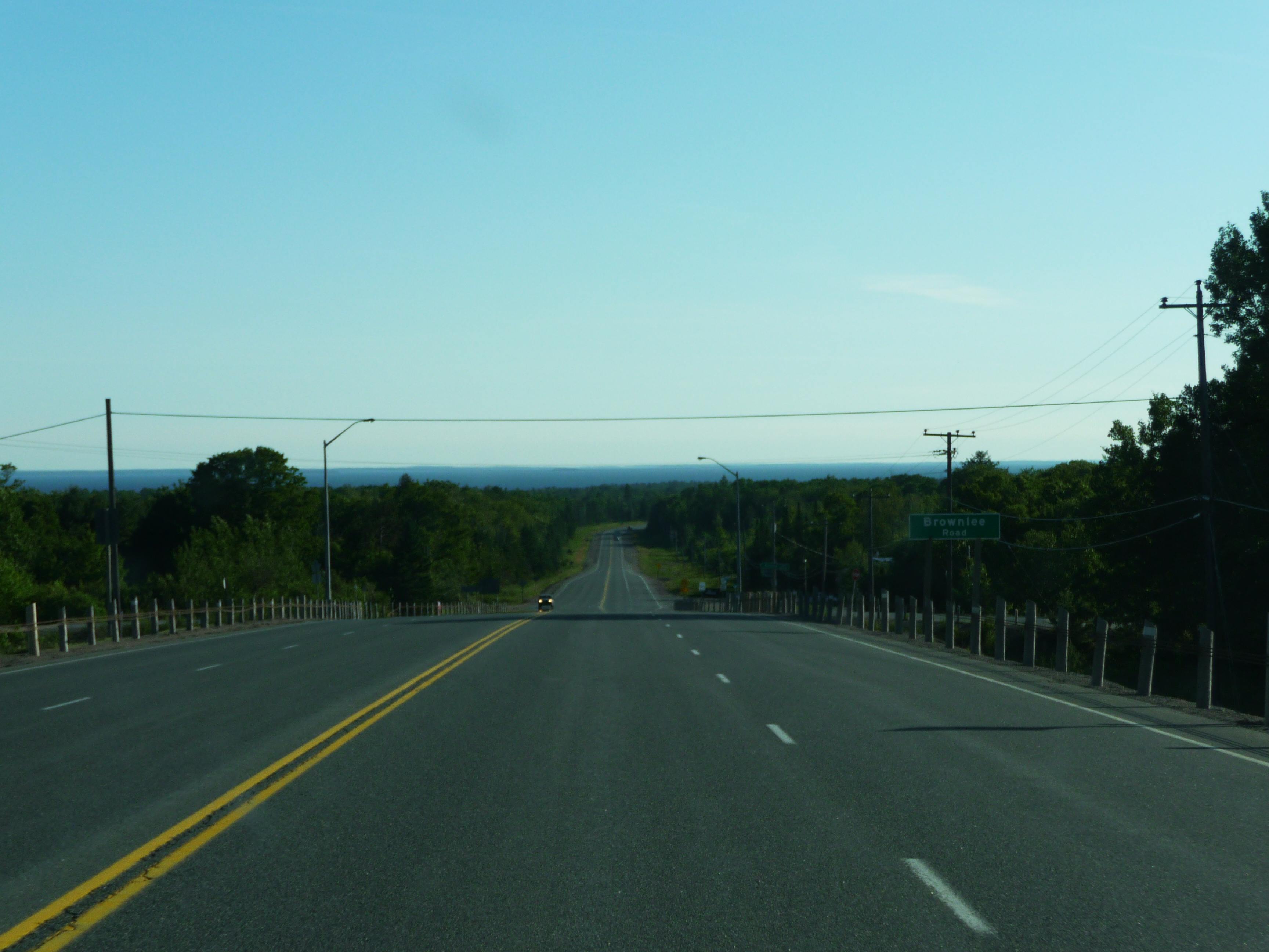 Nous arrivons maintenant sur Sudbury. Il faut manger. Nous nous décidons donc à tester un de leur fast-food, le Tim Hortons. Ne commencer pas à dire « rolalala il ne mange que dans des fast-food », ici il n’y a que ça ! Au point que sur le bord des autoroutes il y a toujours 3 voir 4 fast-food différents par sortie. Bon, pour le coup, bonne surprise, il s’agit en fait de sandwitch, et non de burger super gras tel que le burger king que nous avons fait Lundi (oui c’est encore plus gras ici qu’en europe). Bon, maintenant que nous avons mangés, nous prenons la route qui traverse la ville dans l’espoir de voir les mines à ciel ouvert que nous avions repérés sur google map. Hélas, impossible de s’en approcher, elles sont cachées par leurs propres remblai. On ne distingue que les énormes usines métallurgiques en leur périphérie. Tant pis, abandonnons Sudbury.