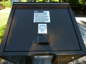 A force de longer le lac Huron, nous nous décidons à sortir de la route pour s’arrêter à son bord. Ici, les poubelles sont spécialement protégées contre les ours et des pancartes nous rappel de ne pas les nourrir … Mouai, moi aussi j’aime autant qu’ils ne me mangent pas. Quelques photos plus tard, nous reprenons la route.