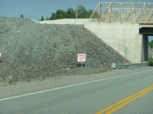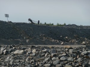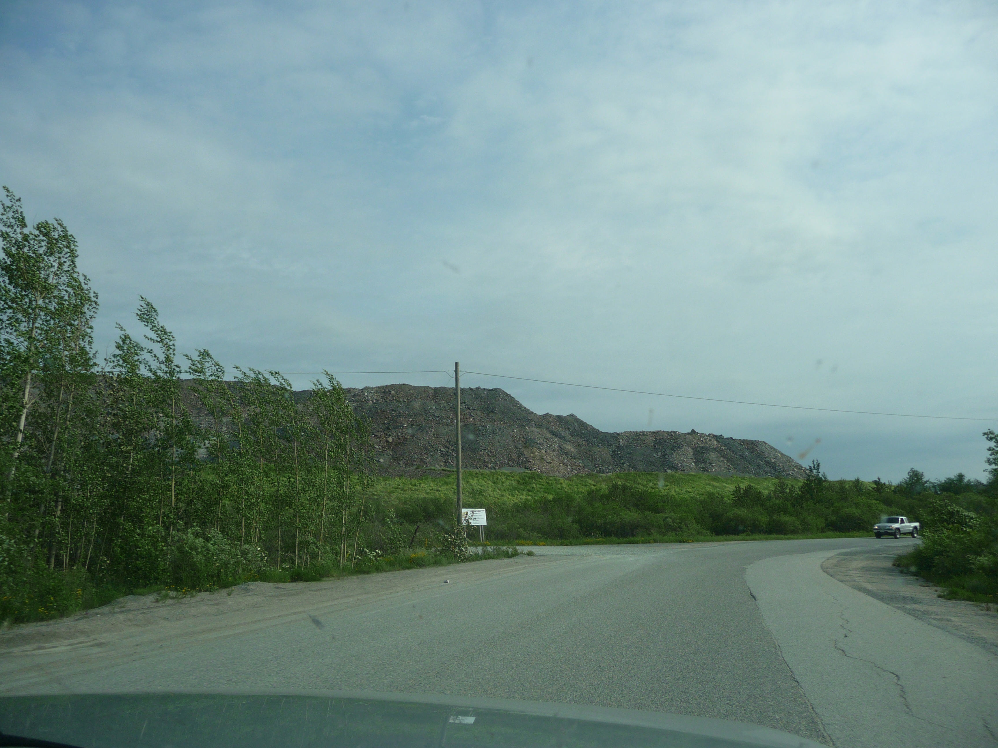 Etape suivante, Timmins est une ville minière. Nous éspérons avoir plus de chance qu’à Sudbury. Il n’en est rien, il n’y a aucun moyen de surplomber les mines. On essaye donc d’approcher la première que nous croisons, mais des panneau « No Trepassing » nous dissuadent d’aller plus loin. Il faut savoir qu’ici ce sont des mines d’or, nous ne prenons donc pas trop de risque face aux sécurités qu’ils pourraient avoir mis en place. Nous continuons la traversé de la ville puis prenons la route d’une autre mine. Nous parvenons jusqu’au poste d’entrer, mais il n’y a toujours pas moyen de voir la mine elle même. Par contre ce que l’on voit bien ce sont les collines qui entourent la ville et qui sont en fait les remblais des mines. Bon nous n’aurons toujours pas vu les mégas big camions, mais bon tant pis, nous reprenons la route pour Iroquois Falls.
