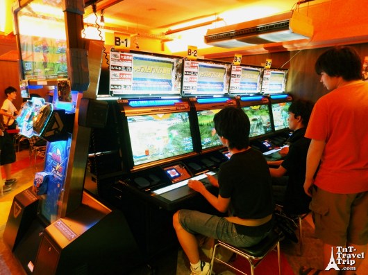 Mais attention, ici ça ne rigole pas. Vous avez beaucoup de jeu de baston qui sont en versus. Le joueur A joue contre le joueur B qui se trouve sur une borne en face-à-face. Et ce sont des habitués si vous voyez ce que je veux dire ;). Vous n’aurez peut être pas beaucoup de temps pour lire l’aide mémoire sur les combos qui se trouve sur la borne.