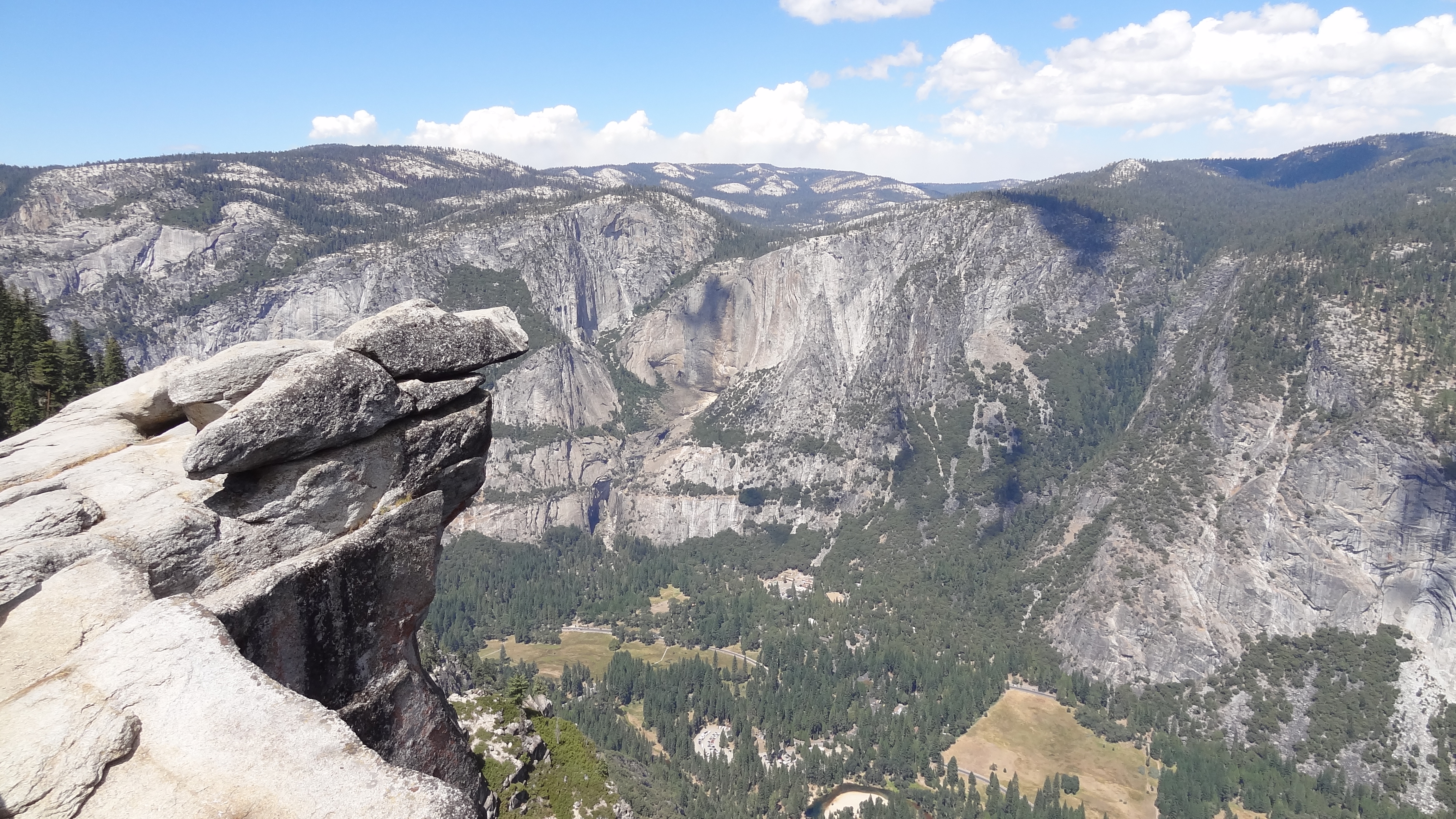Aujourd’hui nous nous sommes donc rendu au cœur du parc de Yosemite. Nous n’avions relativement pas beaucoup de temps et pas beaucoup de choix non plus pour cette visite. Pas possible de se rendre à la forêt de séquoia. Nous nous sommes contentés de visiter la vallée. Pour cela, nous nous sommes rendu au Glacier Point qui domine la vallée et donne une vue sur le Half Dome. Pour le coup la vue vaut vraiment le coup d’œil. Malheureusement encore, c’était un peu la sécheresse et une cascade, normalement magnifique, était complétement à sec.