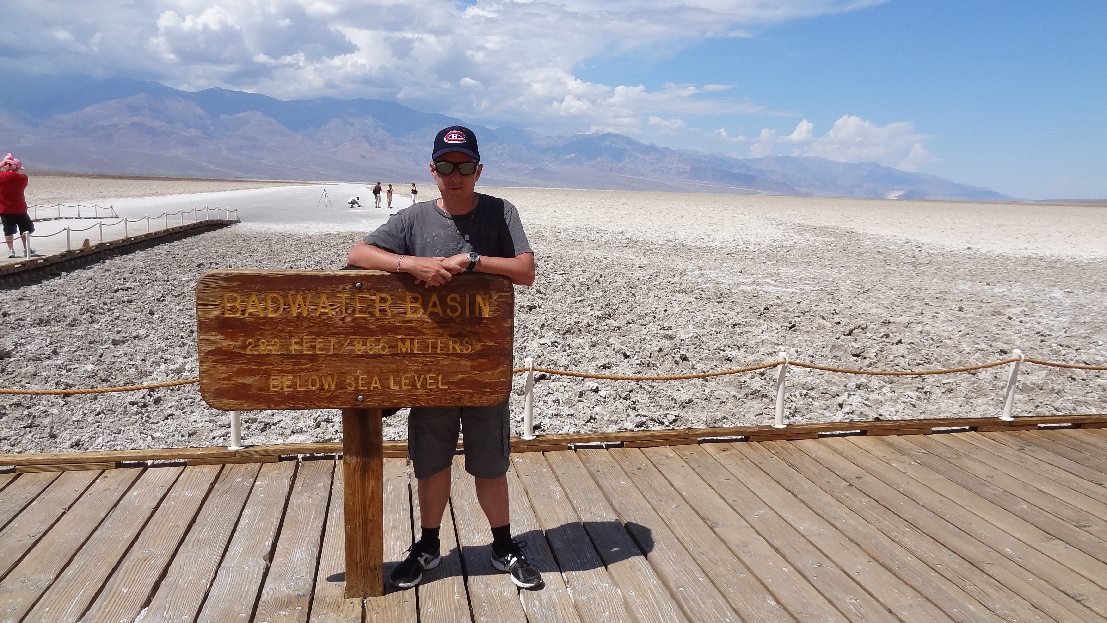 Puits nous avons un peu fait le tour avec le camion. Après avoir longé le Devil’s Golf Course, le parcours de Golf du diable, nous arrivons sur Bad Water. Il s’agit d’une source d’eau au milieu du désert, mais, pas de chance pour les voyageurs assoiffés, c’est de l’eau salée imbuvable. Elle a donc été marquée « Bad Water » sur les cartes.