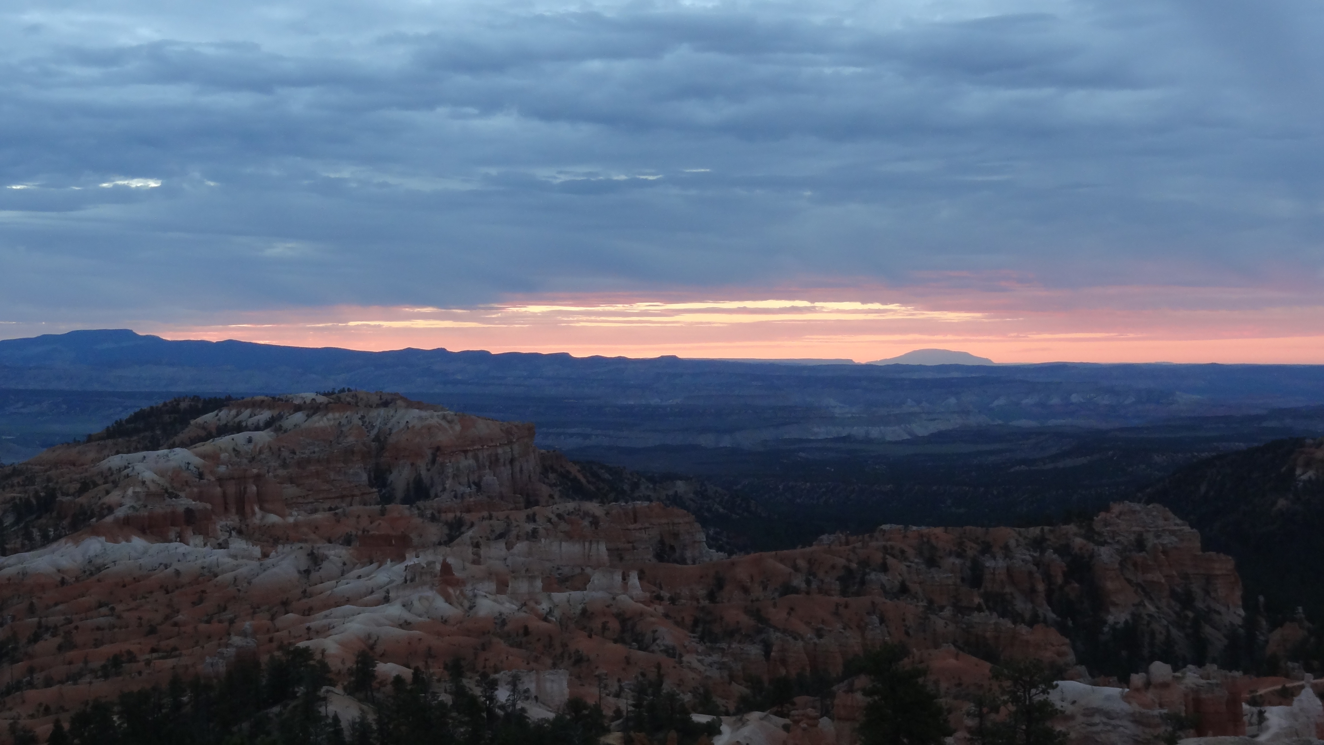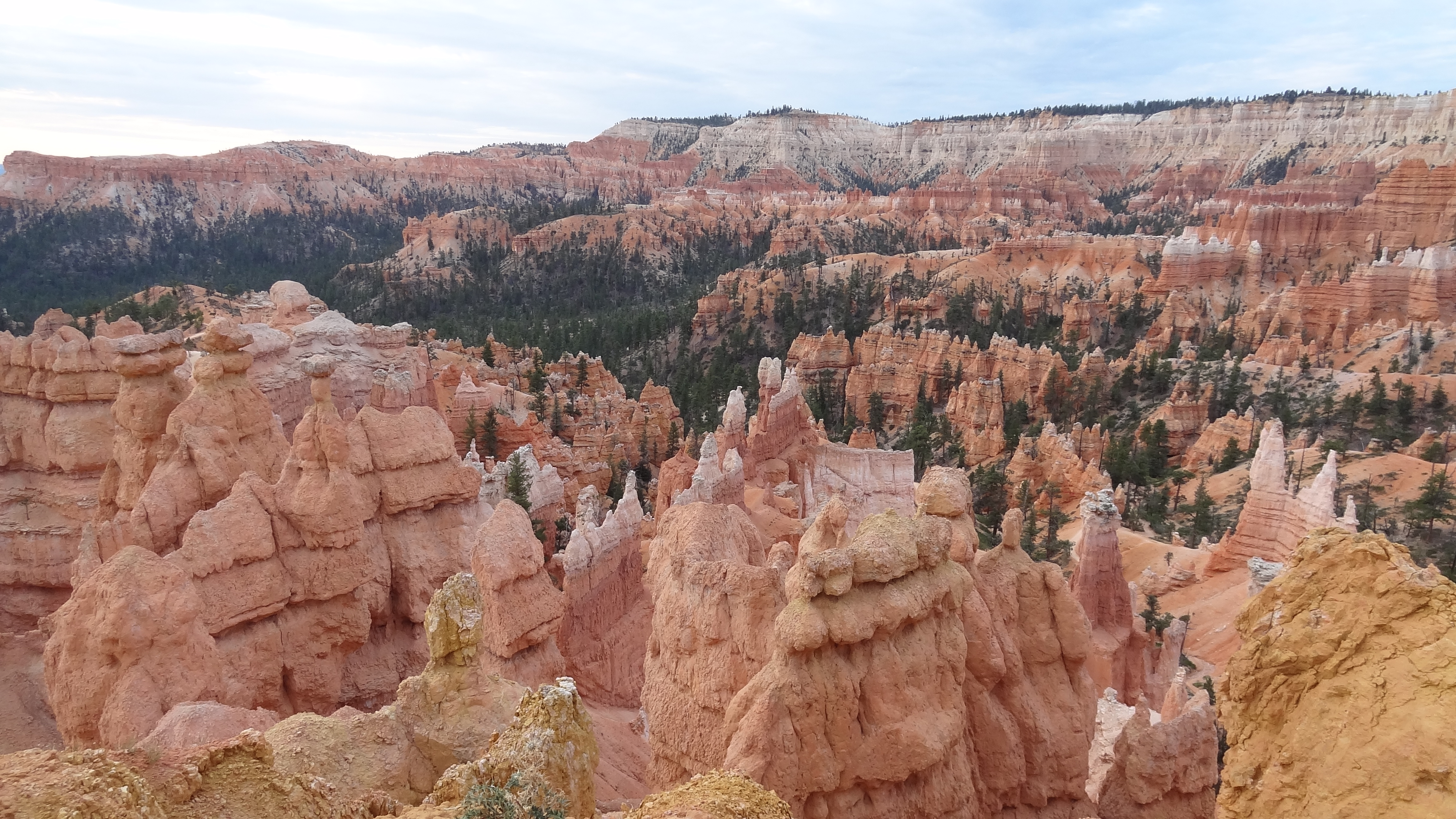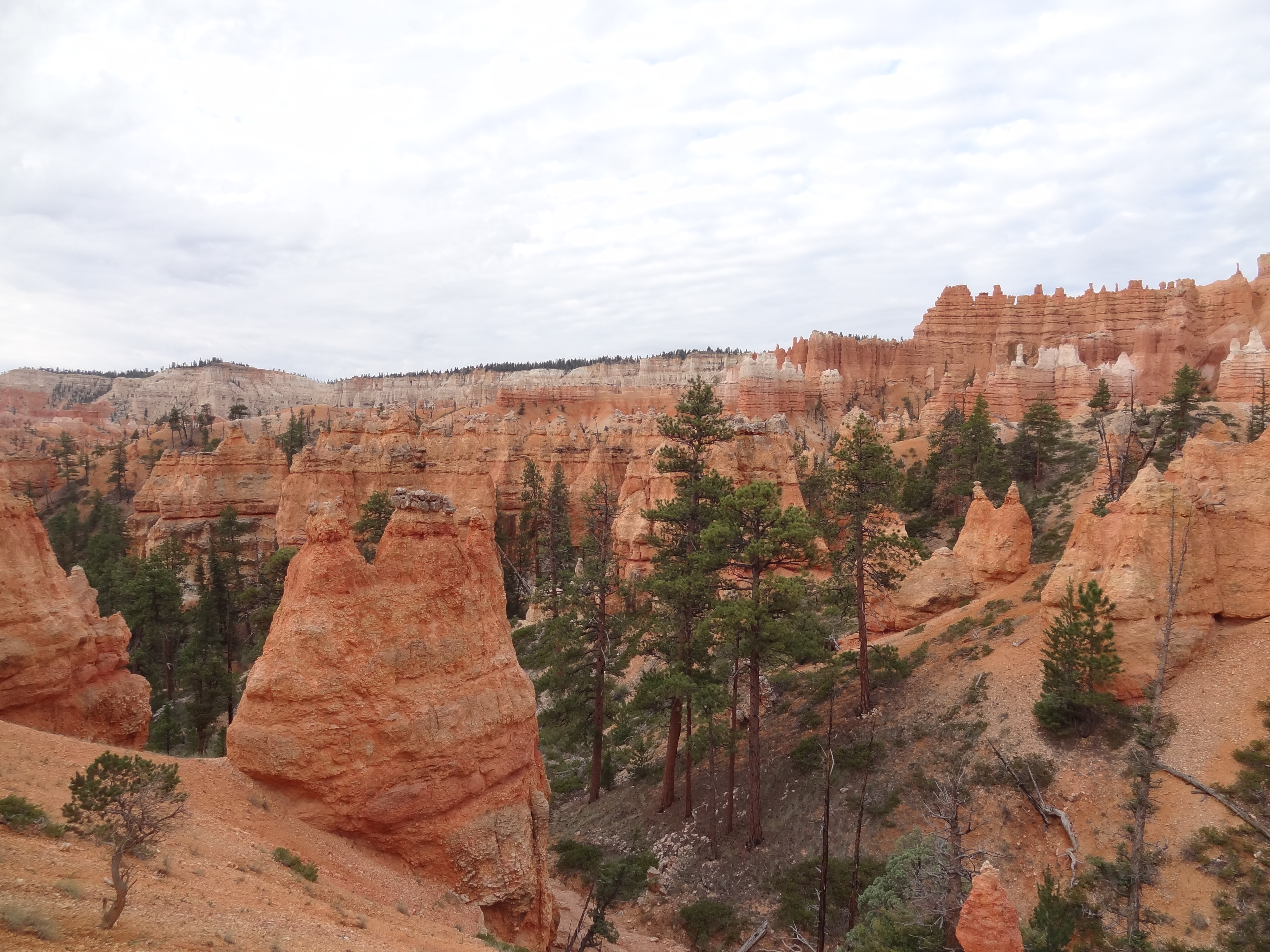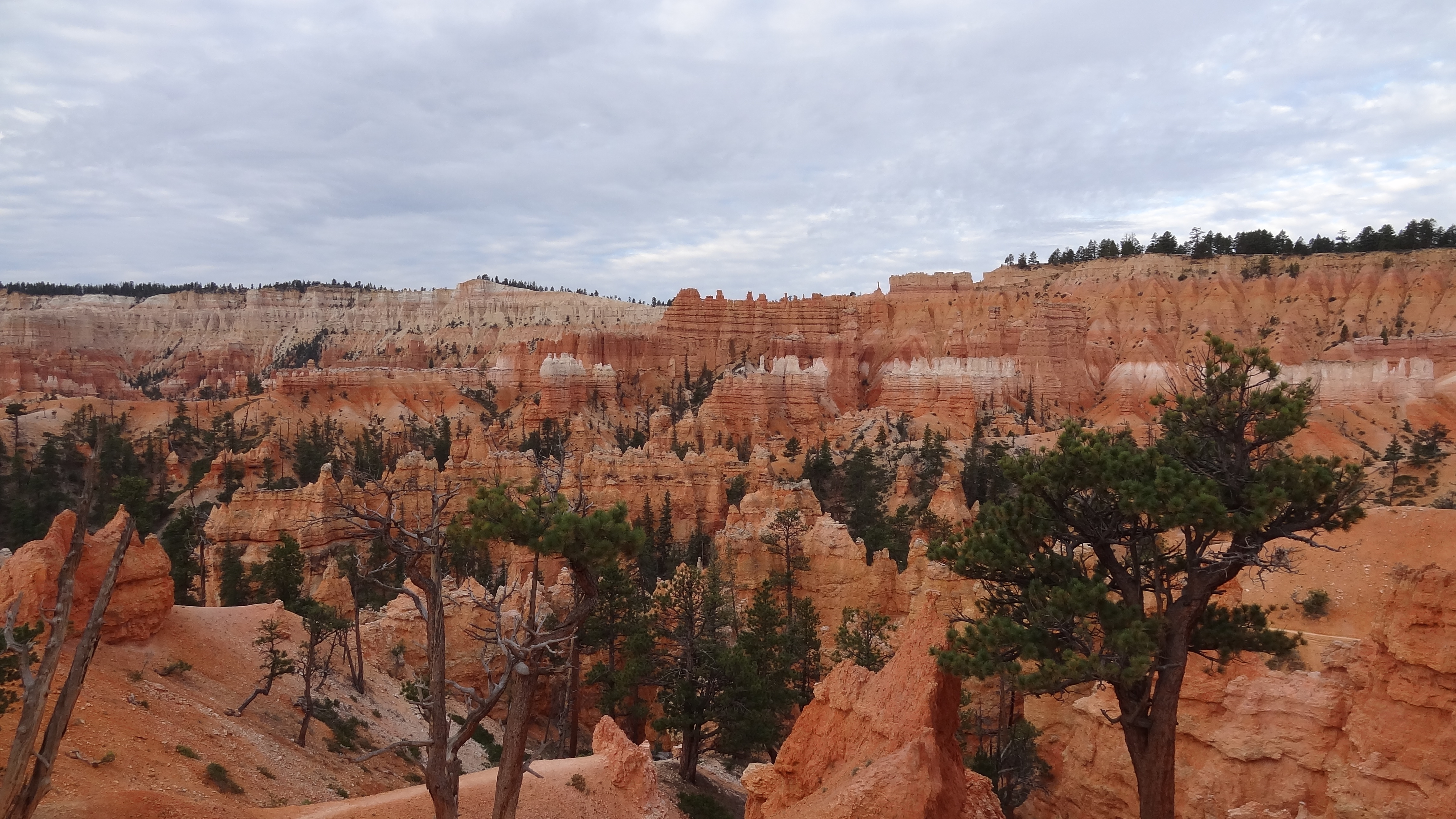 Au matin, mercredi, dès 6h, nous sommes partis voir le levé du soleil sur le canyon. Pas de chance, encore une fois c’était totalement nuageux, le soleil s’est levé pour se cacher derrière. On n’a donc pas eu droit aux lumières sur les rochers. Mais bon, c’est pas grave, nous avons emprunté un petit chemin de randonné qui nous a descendu au plus prêt. Le paysage est juste magnifique et très atypique.