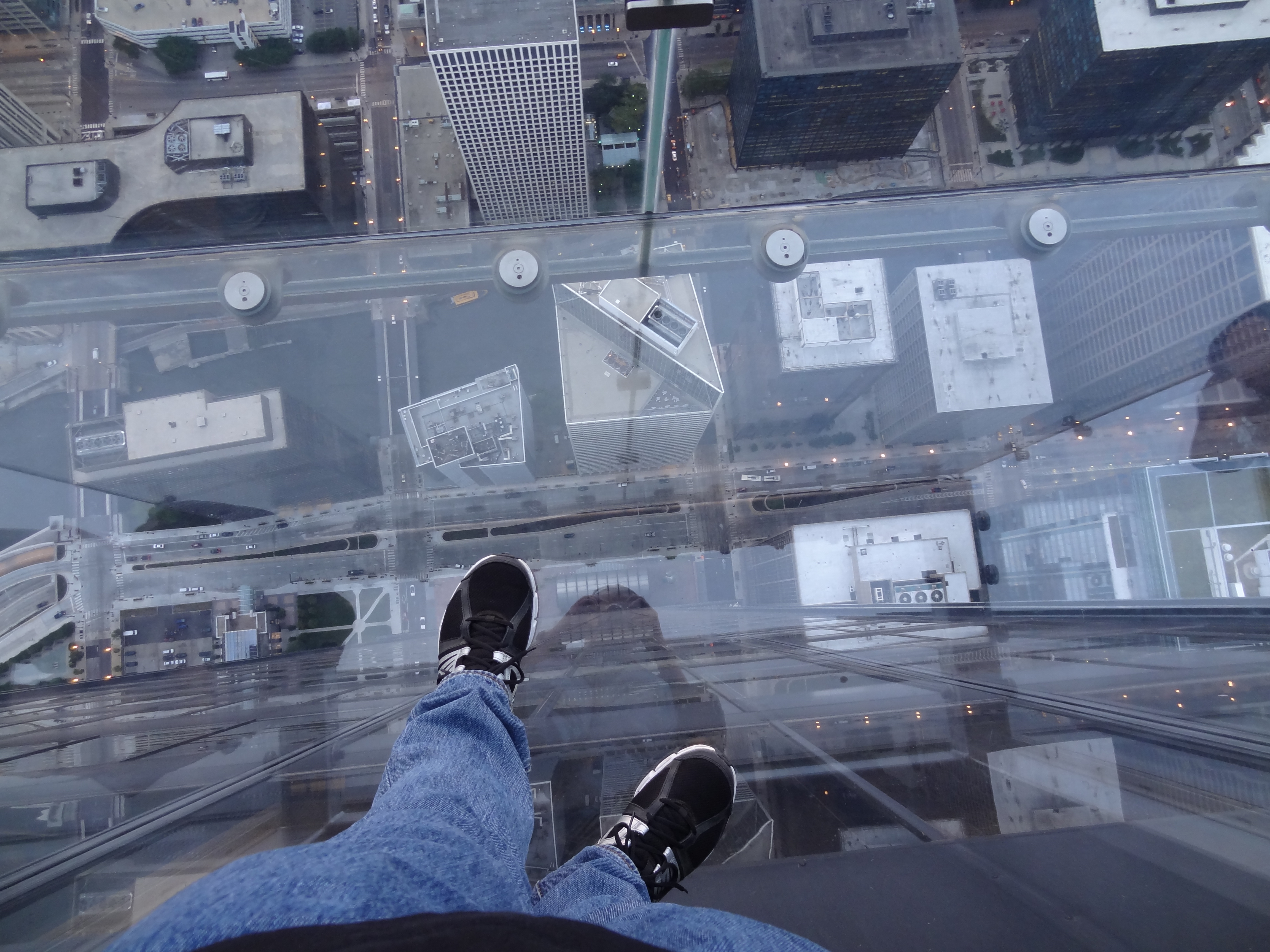 Anciennement la Sears Tower, c’était le plus grand gratte ciel du continent américain avant la construction du One World Trade Center à New York. 108 étages sur 442m et une pointe à 527m.