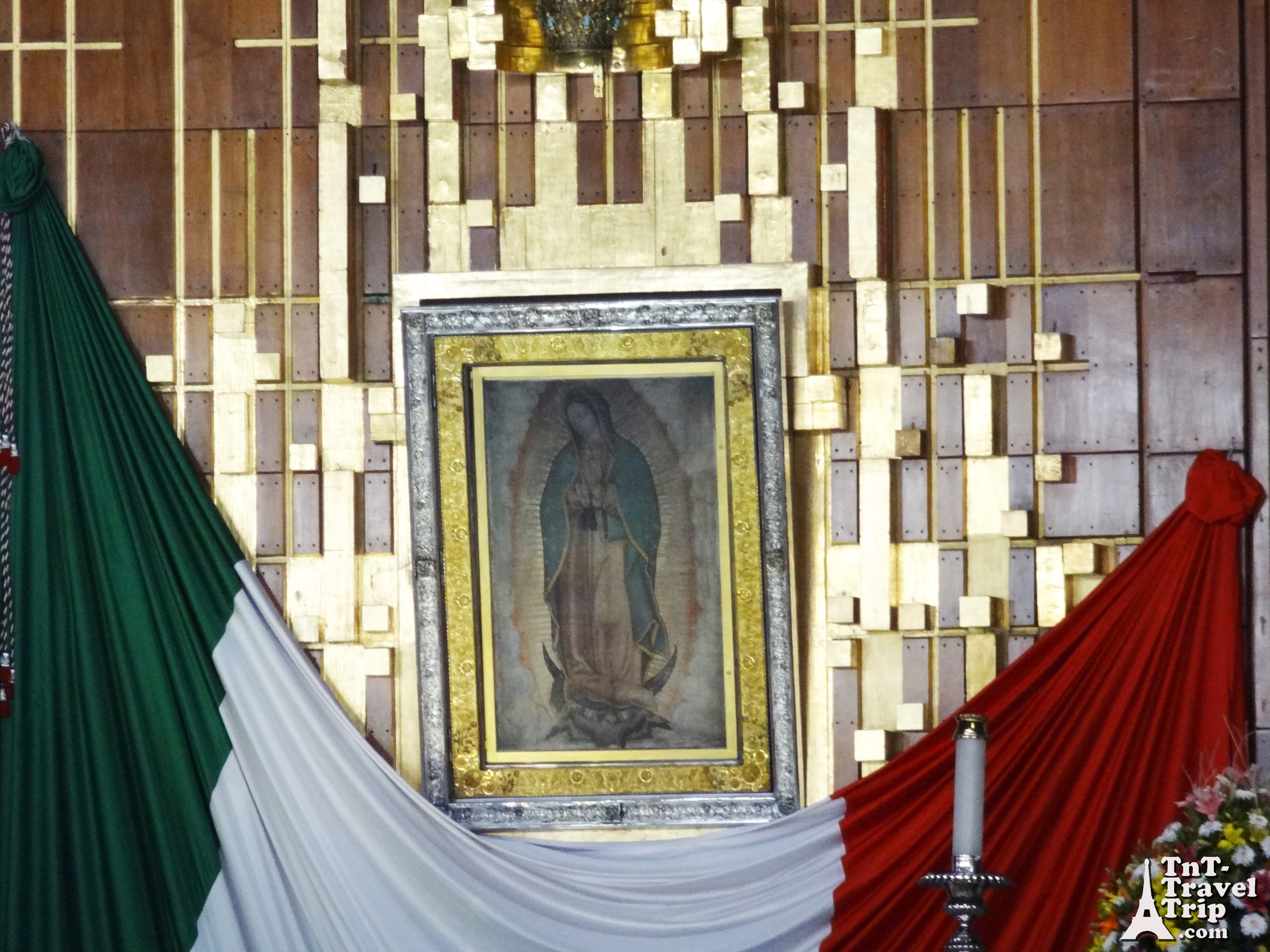 La basilique expose la tunique de Juan Diego Cuauhtlatoatzin où s’est imprimée l’image de la Vierge Marie. Il est possible de la voir de près en empruntant un tapis roulant tout comme les joyaux de la couronne à Londres.