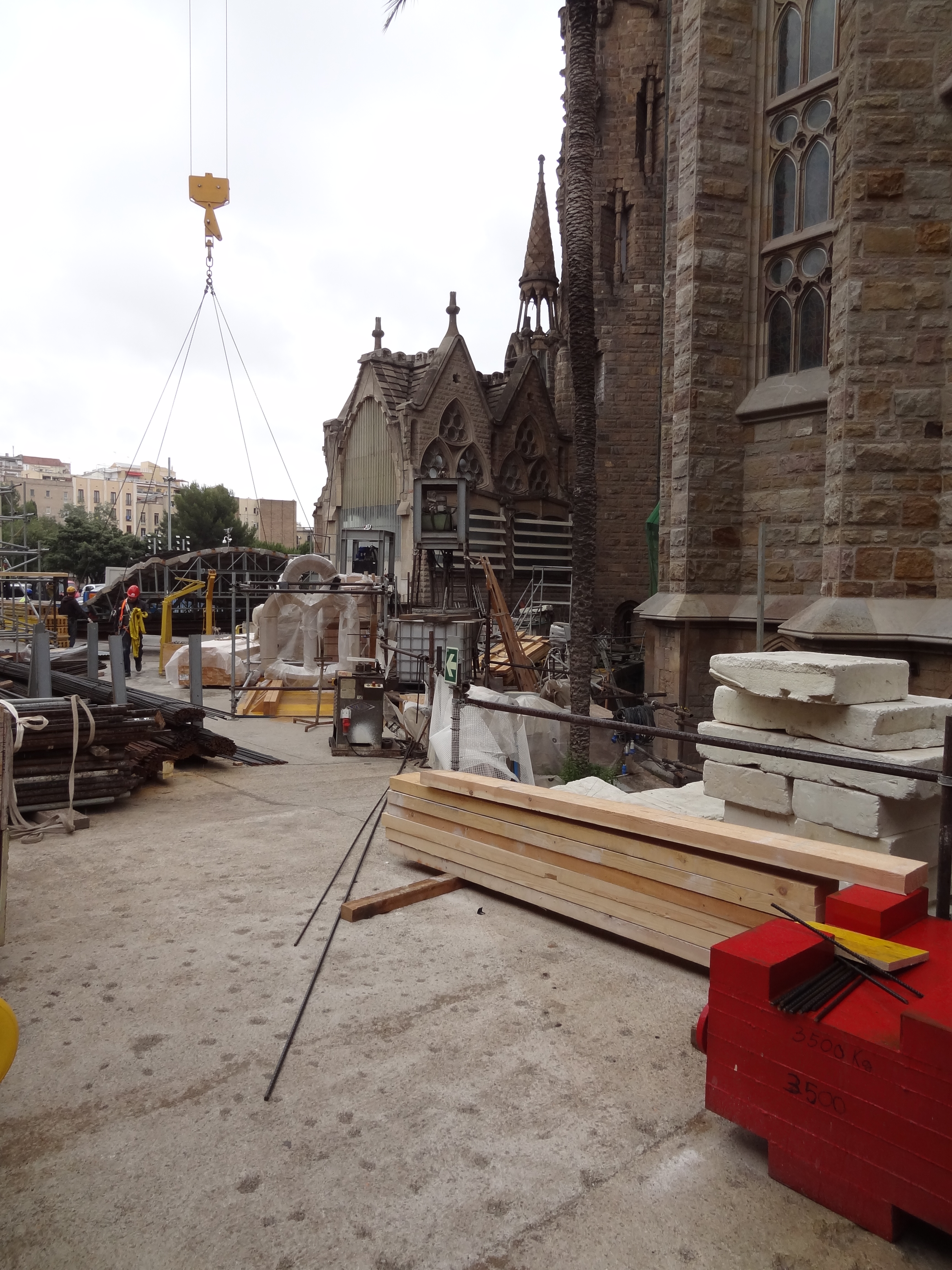 C’est la moins aboutis de ces trois façade. Pour l’instant, je trouve cette grande baie vitrée d’une mocheté inégalée. Mais bon, il faut bien voir qu’il ne s’agit là que de la structure en béton. Sur cela viendra s’appuyer une façade sculptée qui, je l’espère, recouvrira peut être en partie cette horreur. En tout cas, sur les plans de Antoni Gaudí c’est beaucoup plus beau.