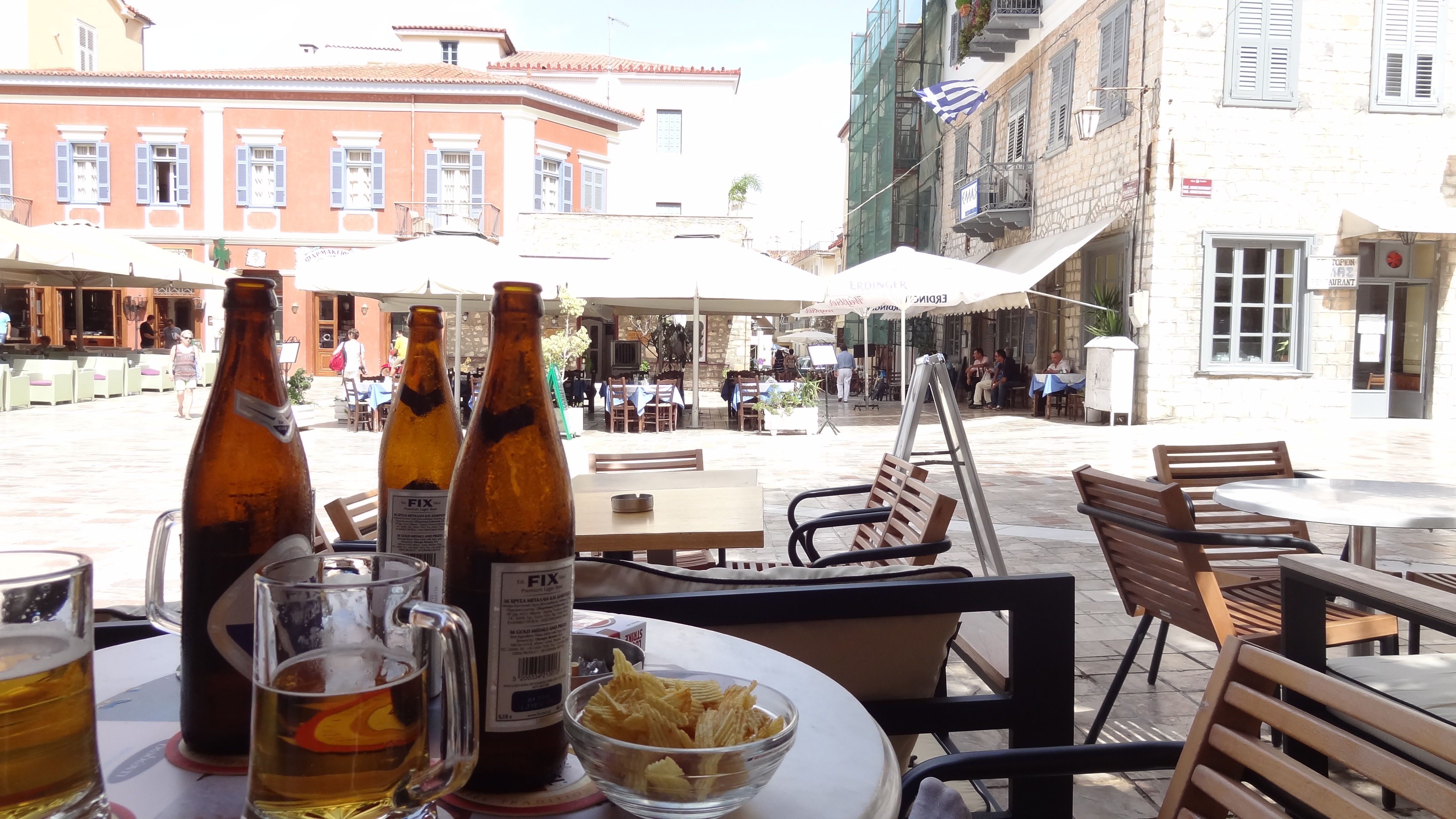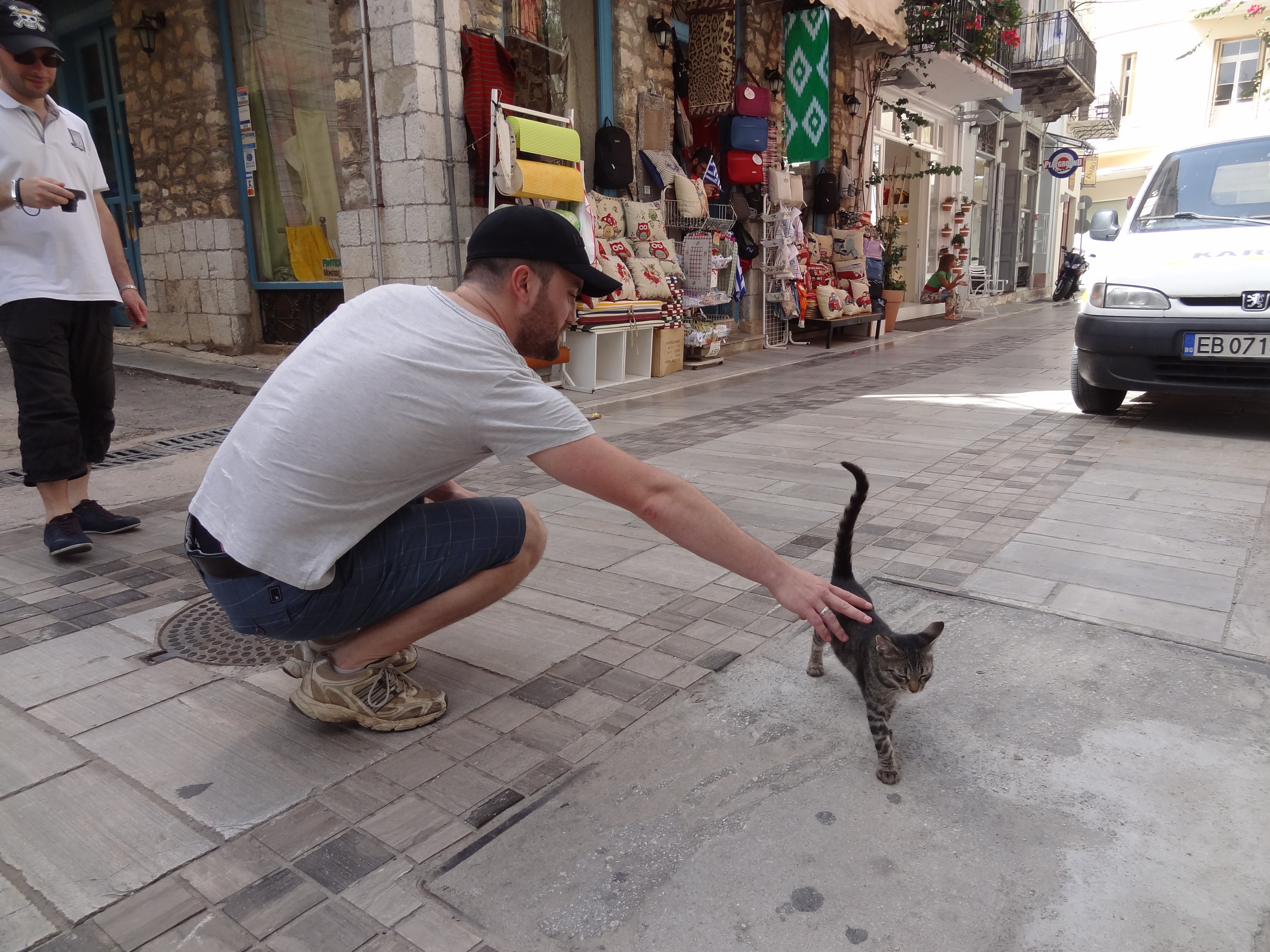 On a juste le temps d’aller en ville pour manger une Gyros Pita (le vrai Kebab grecque) bien sympa. C’est vrai que c’est super bon. À peine assis sous la tonnelle une grosse averse inonde les ruelles. Alors que les enfants joue dans les flaques, les serveurs semblaient tout paniqués en voyant l’eau passer sous les tables. Ils n’ont pas l’air d’avoir l’habitude.