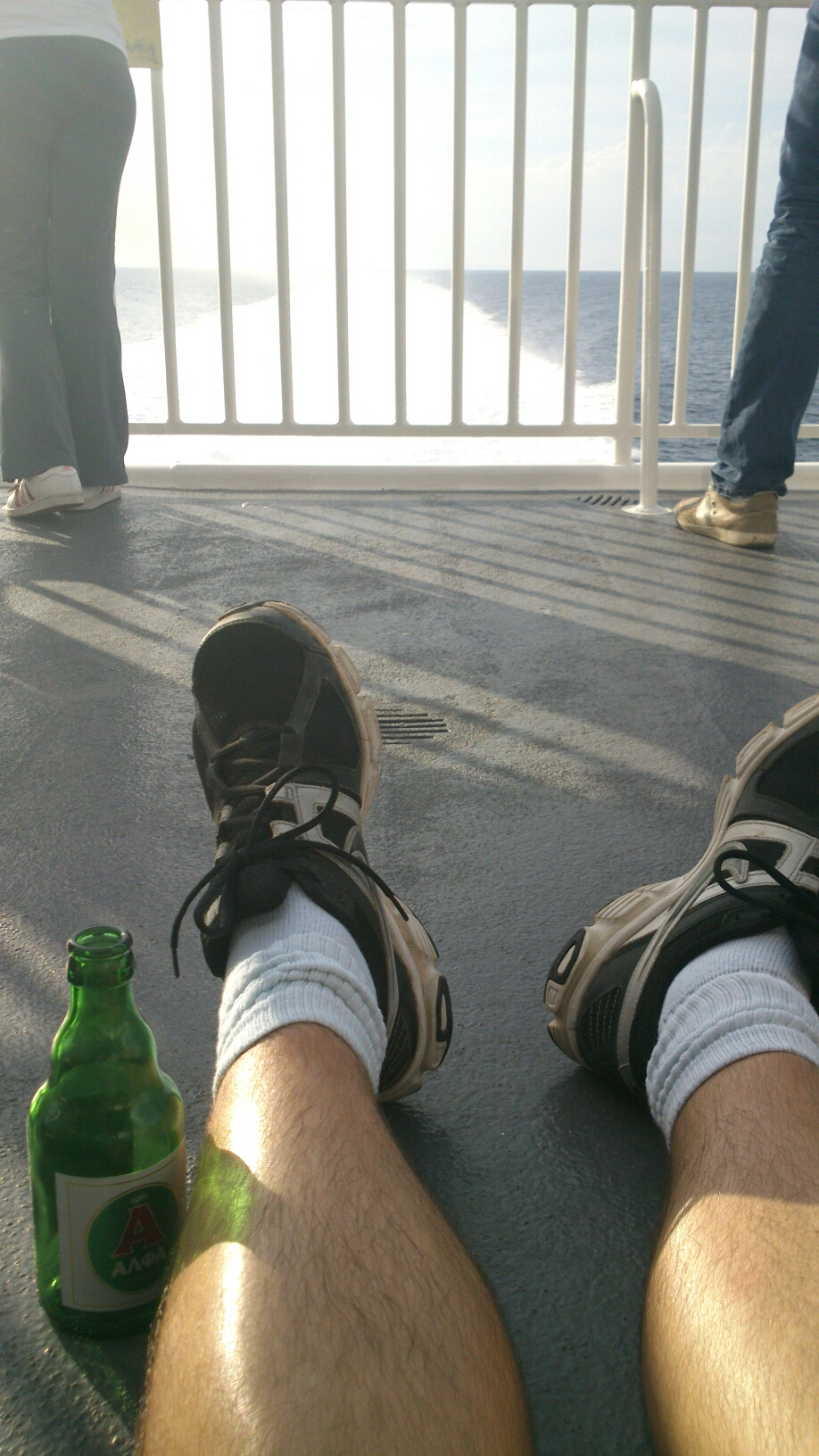 C’est plutôt chouette la traversée, on voit constamment une île, on n’est jamais en pleine mer. Mais malgré ça, c’est très agité, mieux vaut ne pas avoir le mal de mer. C’est même très dur de tenir debout parfois 😛 (je publierais une vidéo rigolote une fois en France).