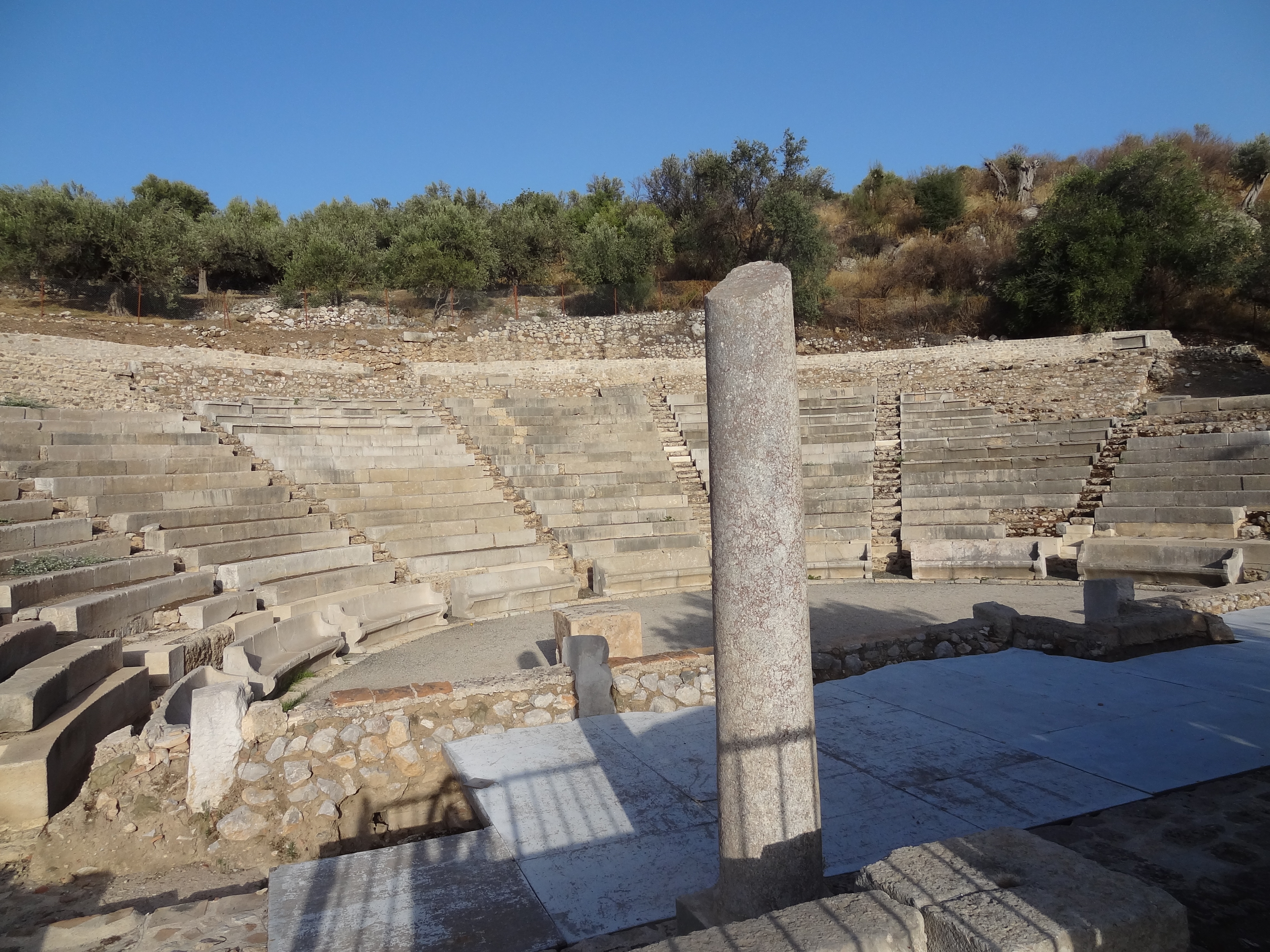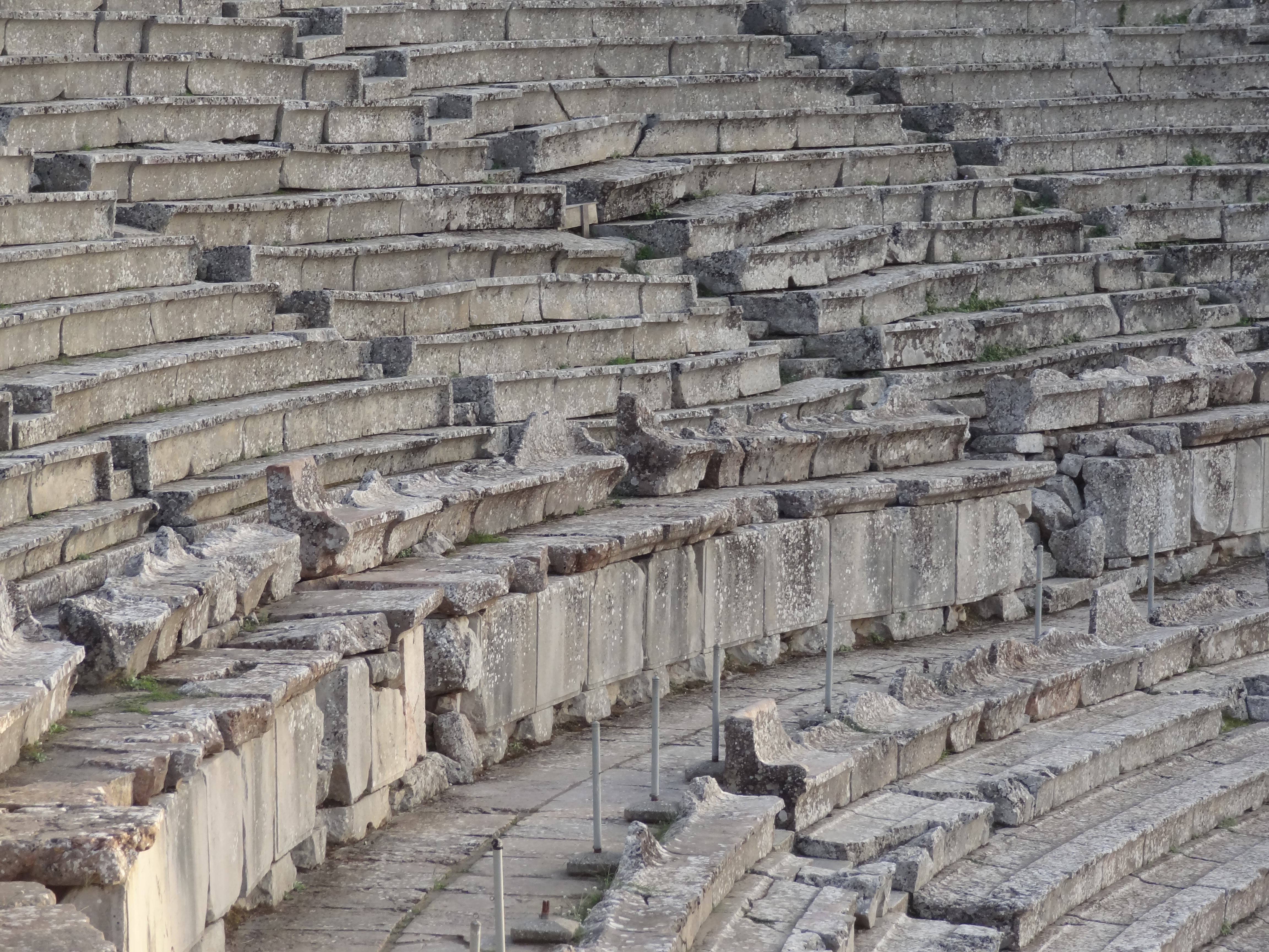 Ce Théâtre, construit en 330 av. J.-C., est en parfait état et offre toujours une acoustique impressionnante. On entends parfaitement les gens parler même du haut des tribunes.