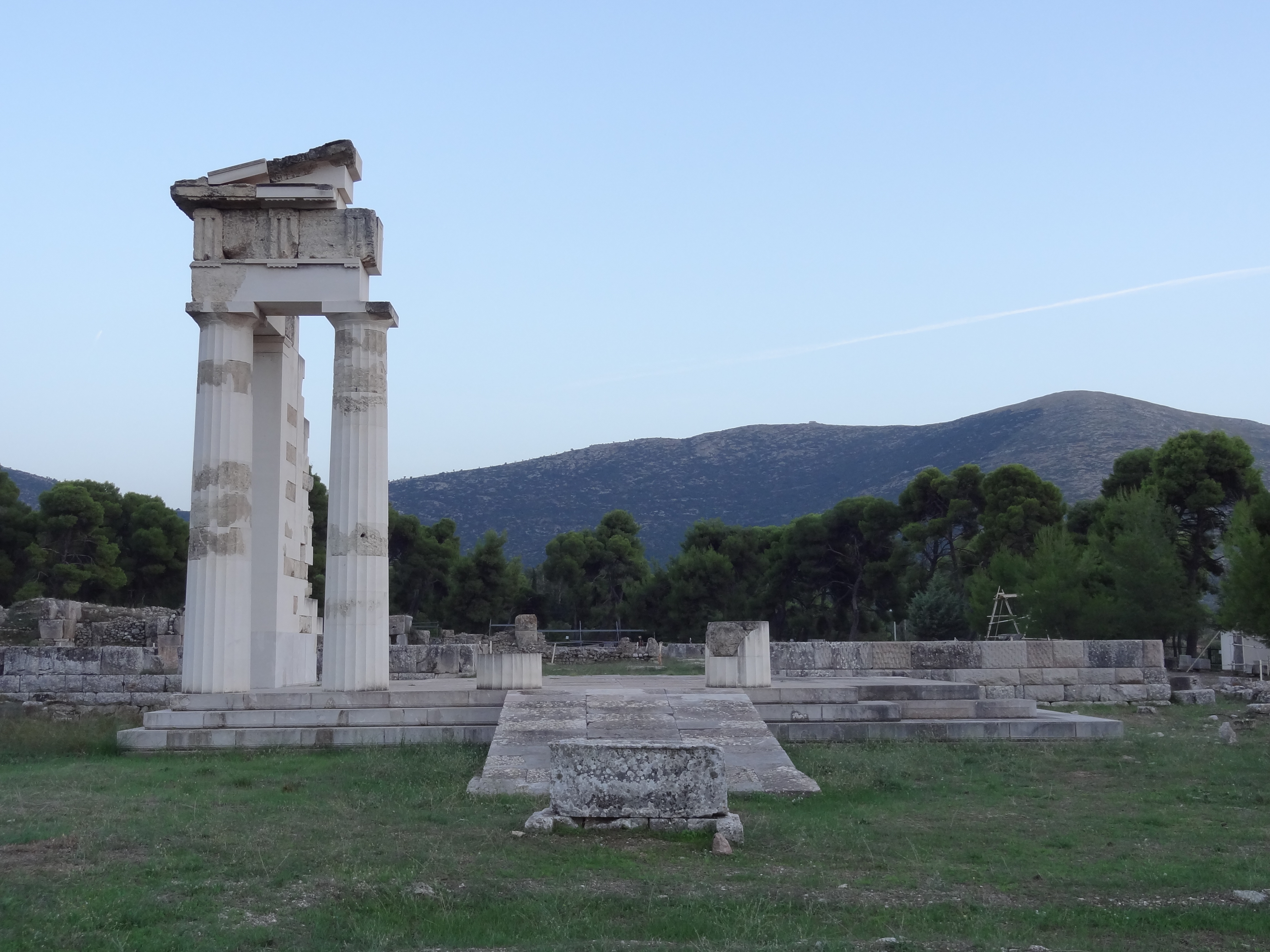Nous approchons de notre destination, les panneaux indiquent Ancient Theater. Nous nous embarquons dans des petites routes avant de se retrouver face à la mer dans un petit village étroit… Bon demi tour, on a du rater quelque chose. Non, on tourne en rond avec leurs panneaux ! On va se fier au GPS. Nous arrivons enfin sur un site archéologique. Mais nous découvrons vite que ce théâtre là est bien ridicule par rapport à celui de Epidaure.