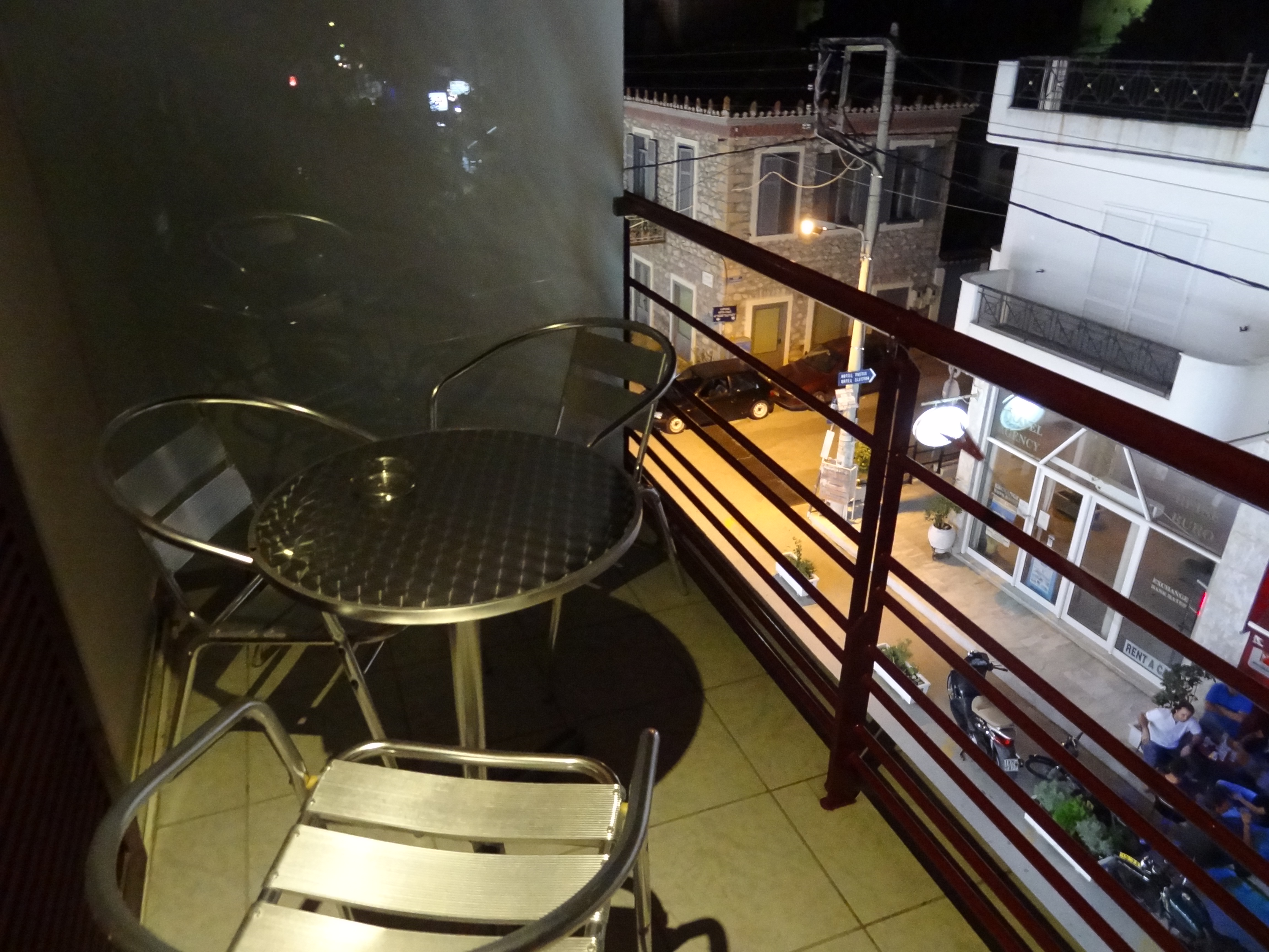 Notre balcon donne sur la rue principale, juste derrière c’est la mer