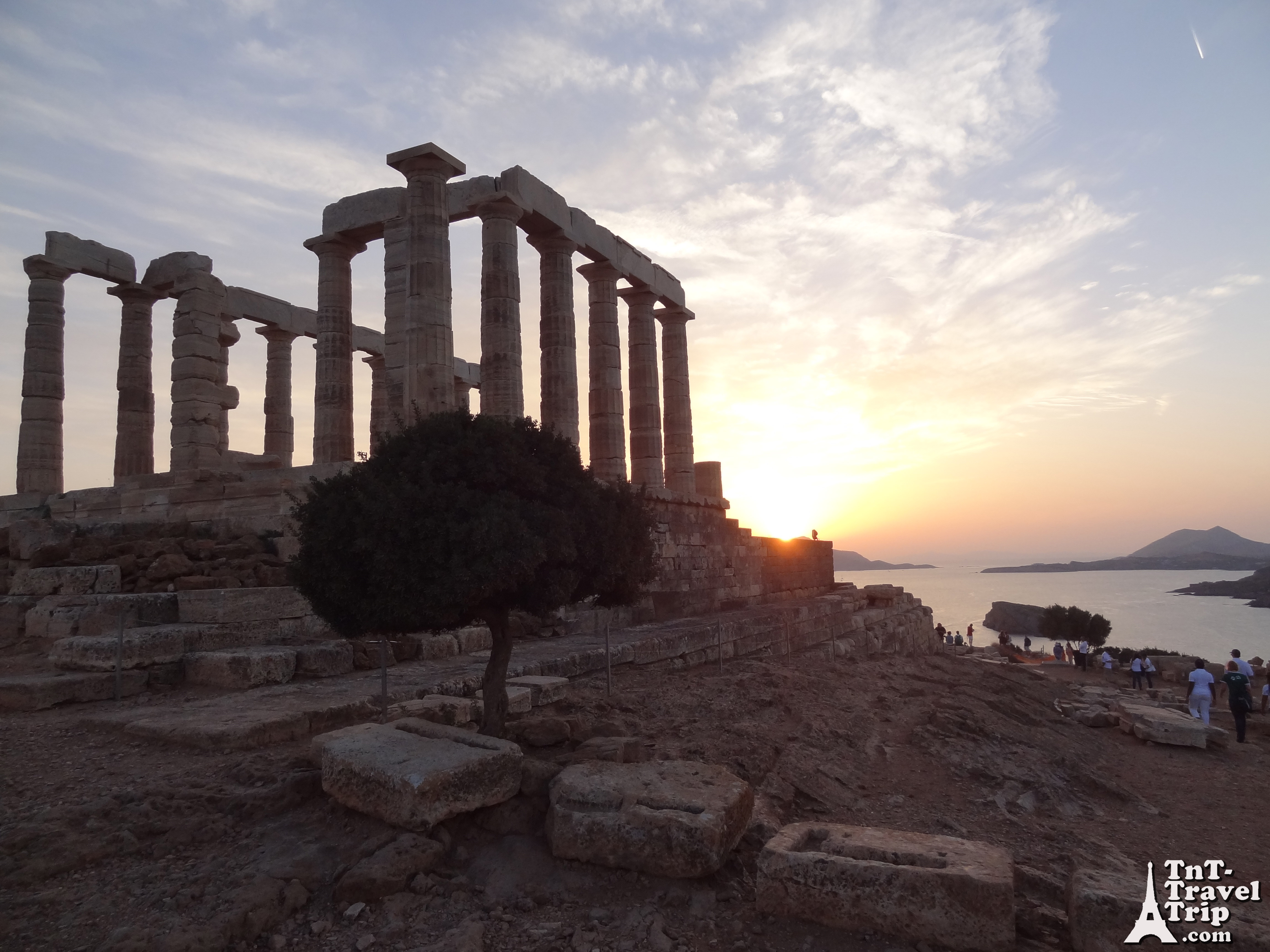 C’est un fort qui a été construit ici, sur la cap de Sounion. Surplombant la mer il permettait de défendre l’Attique. On y construisit alors un sanctuaire en l’honneur d’Athena et de Poséidon. Qui mieux que la déesse de la guerre et le dieu de la mer pouvait défendre une côte.