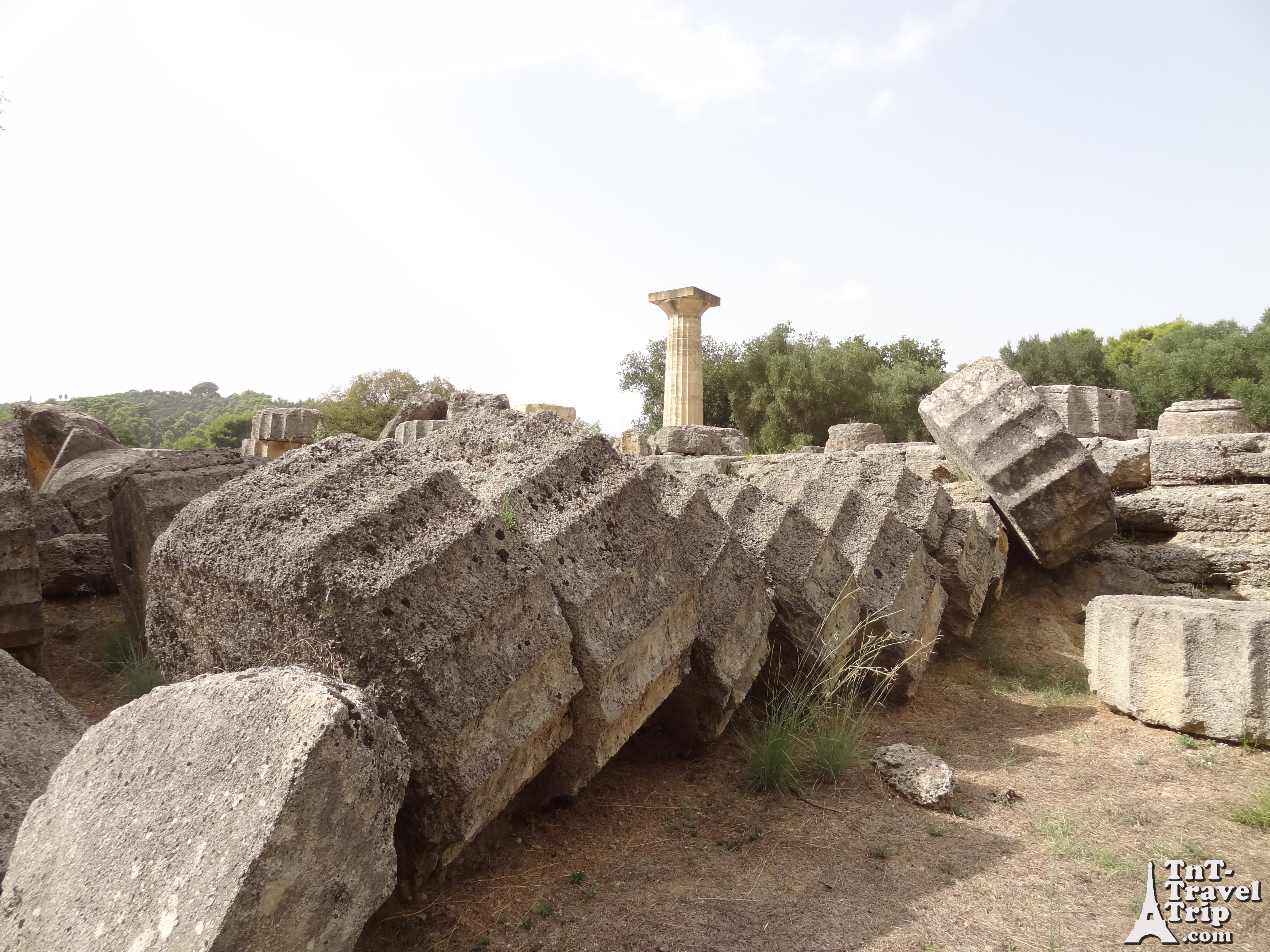 Comme je disais donc, Olympie est avant tout un sanctuaire religieux. En son centre ce dressait donc naturellement un temple dorique. Mais il n’est pas pour n’importe quel dieu. Le temple est érigé à la gloire de Zeus. Père de tous les dieux et de tous les hommes, dieu du ciel et maître du temps, Zeus, en terrassant les titans, est le fondateur de l’Olympe.