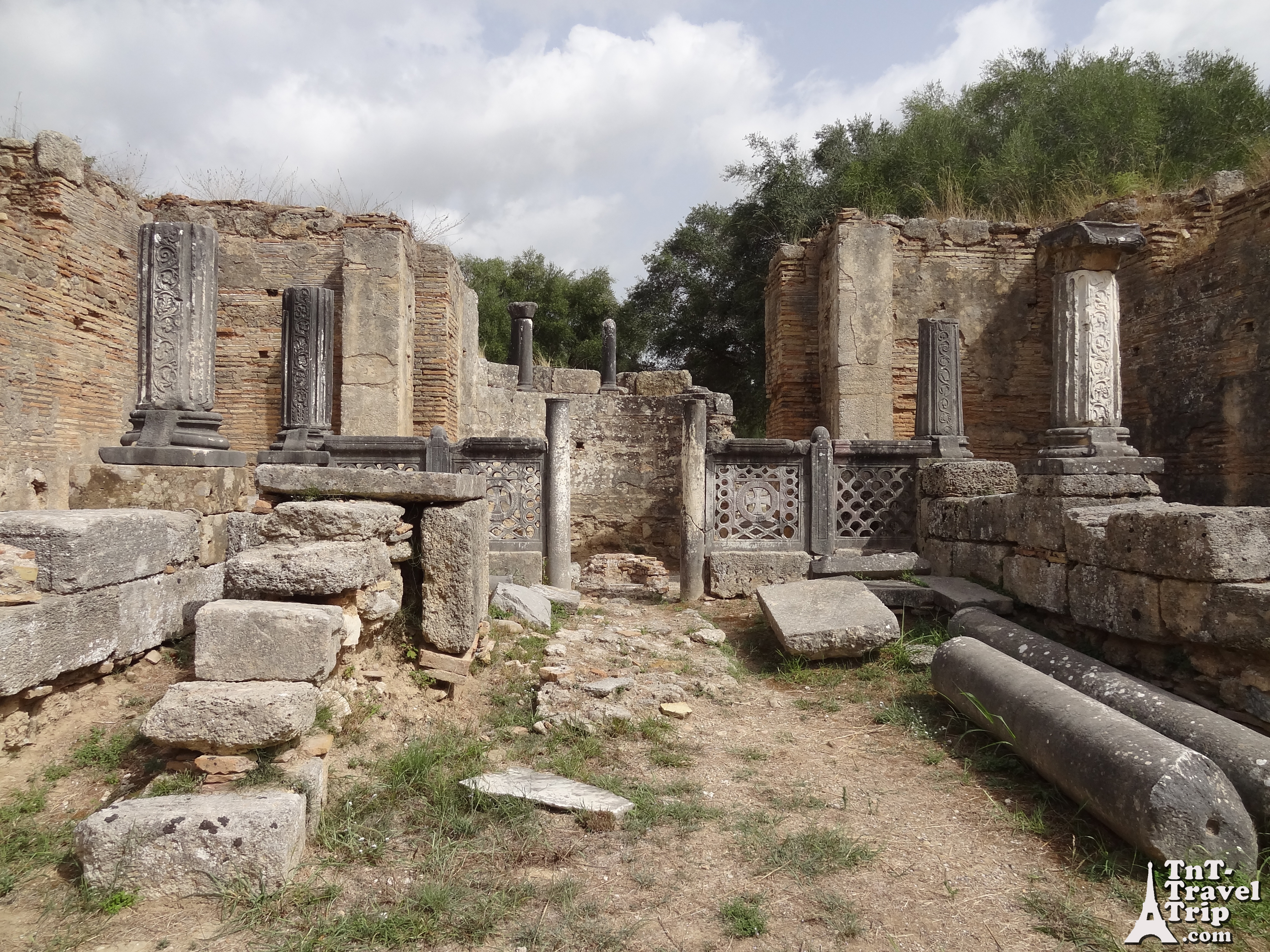 En honneur à l’artiste, l’atelier de Phidias a été conservé malgré sont positionnement dans l’enceinte du sanctuaire (24 sur le plan)
