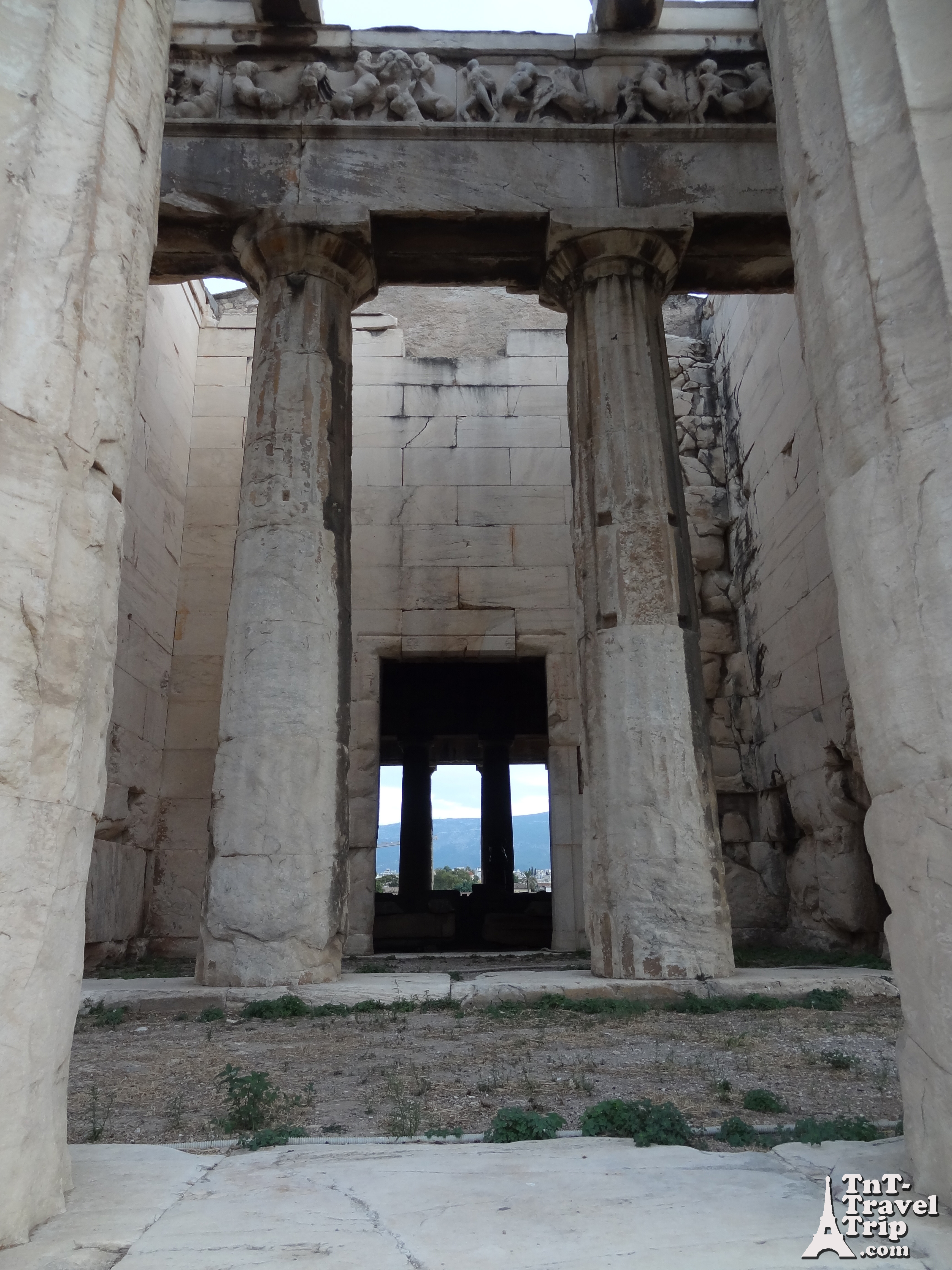 Comme nous n’avions rien préparé pour ce voyage, nous consultons quotidiennement internet pour repérer les lieux touristiques. C’est ainsi que, par le biais de Tripadvisor, nous avons pris connaissance de l’existence de l’Héphaïstéion. Sa visite est conseillée car il a la particularité d’être entier. Il n’a cependant plus son toit d’origine, je pense qu’il a été reconstruit au VIIe siècle quand le bâtiment a été converti en église chrétienne.
