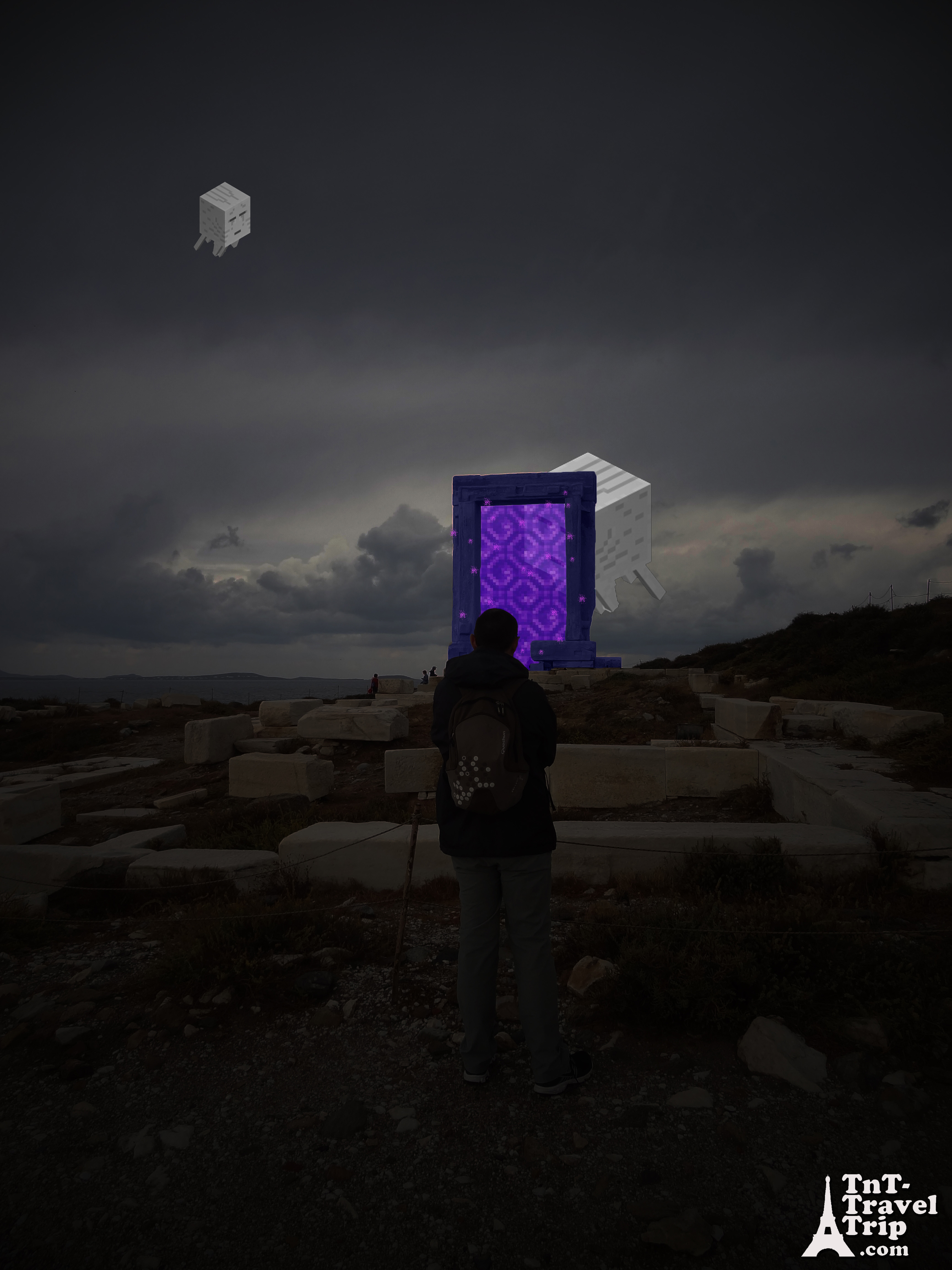 Oui, déjà bien avant de partir, depuis que j’ai vu une photo de Naxos sur Internet, je m’amuse à comparer ce vestige au portail du Nether du jeu Minecraft .