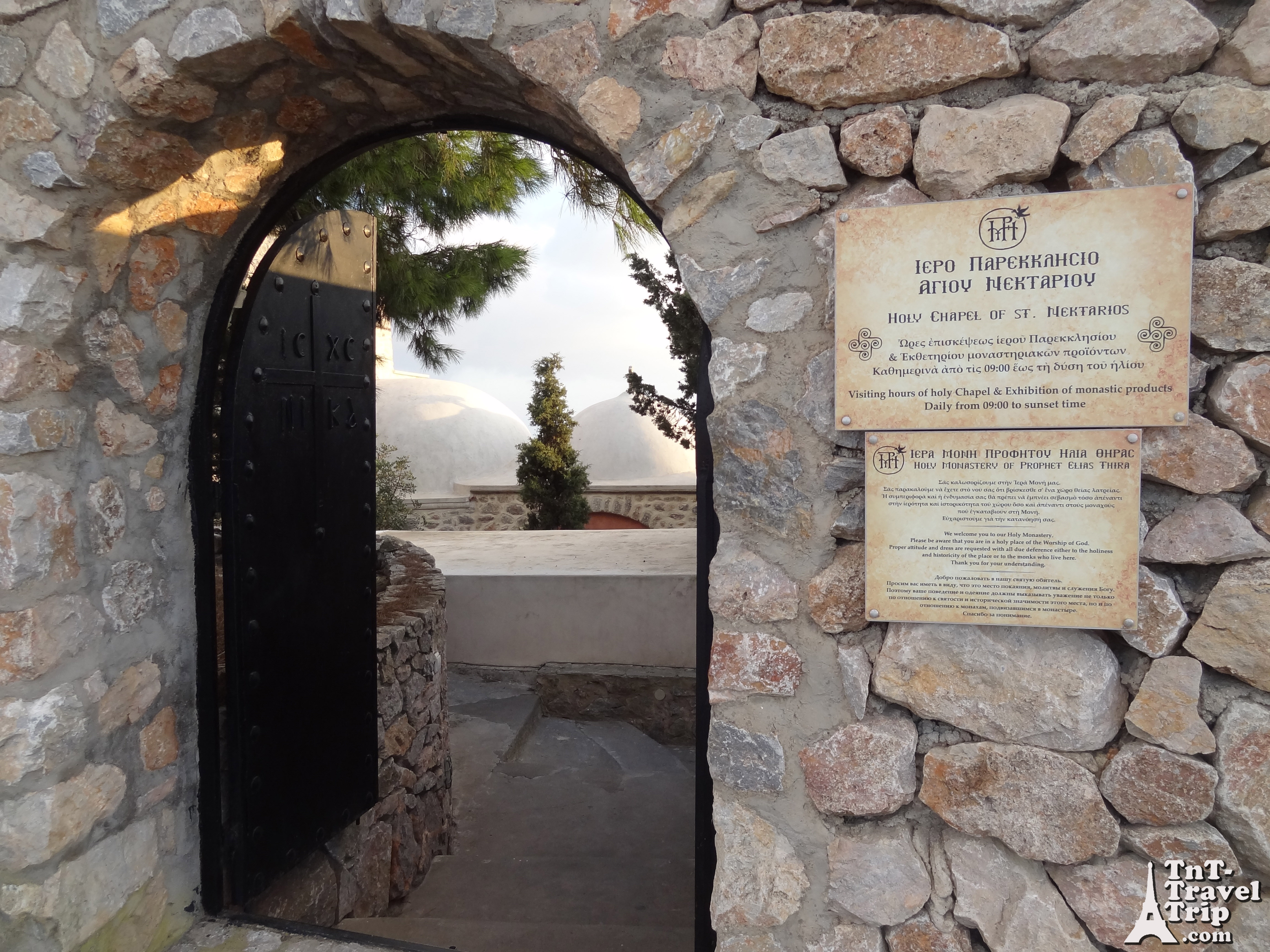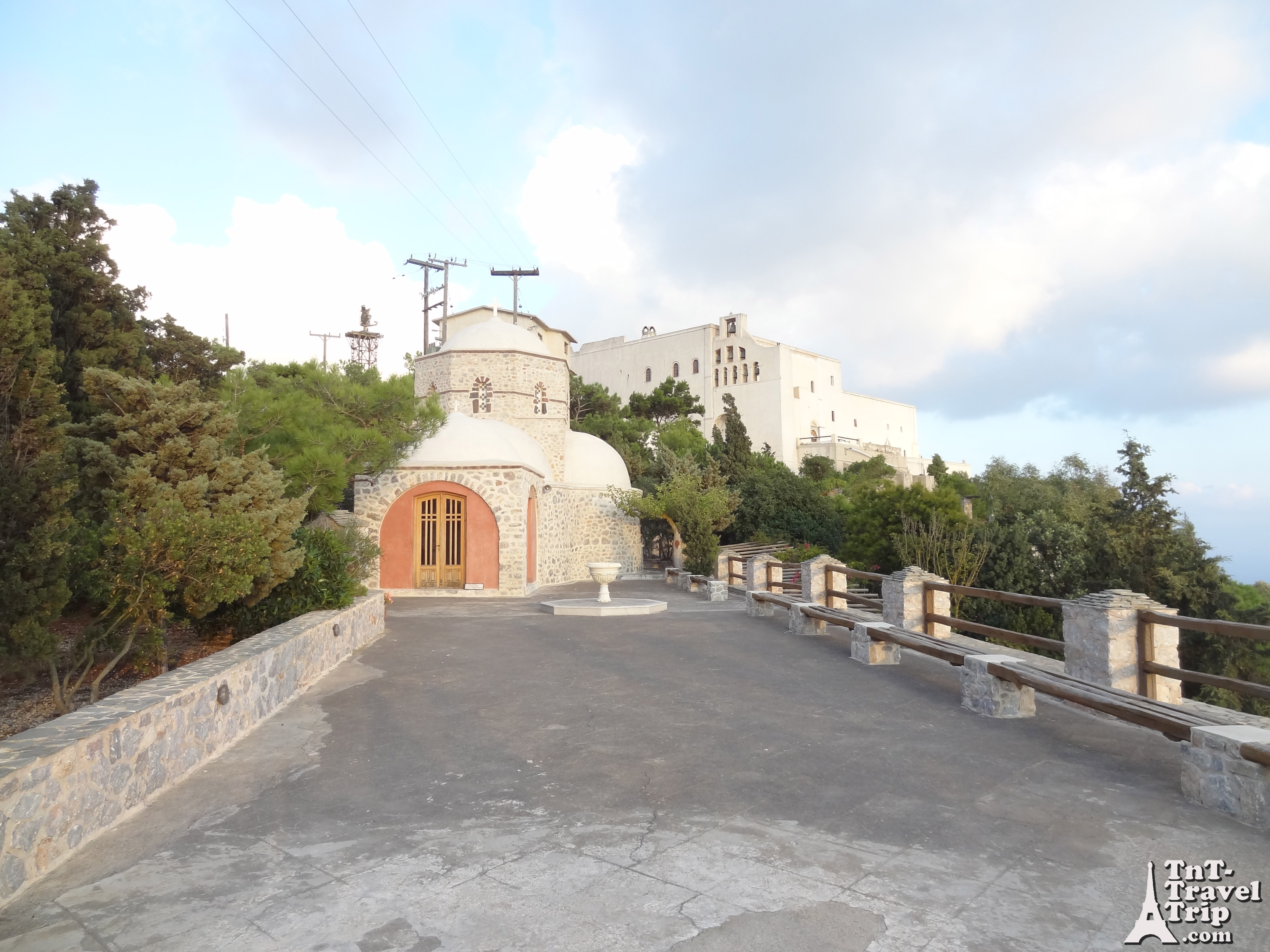 D’ici, nous apercevons le sommet du Mont Profitis Ilias. La vue est déjà pas mal mais deux fois plus haut ça doit être encore mieux. Il s’agit du point culminant de l’île. Du haut de ses 567m, il est possible de voir toute l’île. Alors c’est décidé, nous continuons l’ascension.