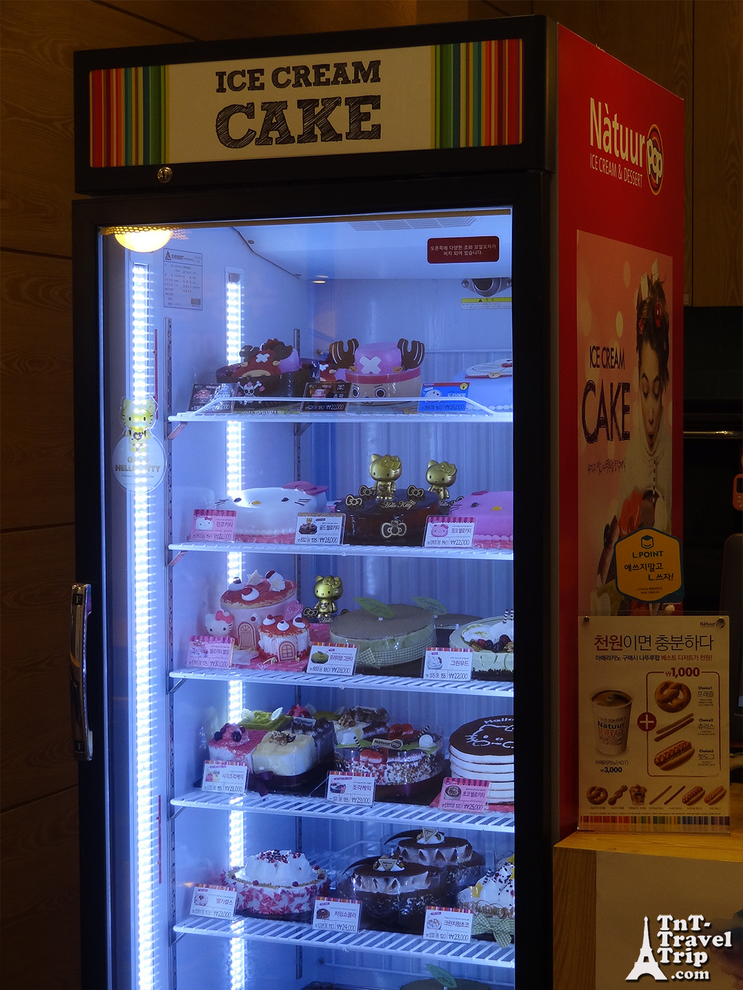 Petite anecdote rigolote, on ne trouvait pas où s’acheter une petite bière pour le repas. Il y avait bien un bar, mais il était fermé. Alors on scrutait les cartes, mais non nulles n’affichaient de boisson. Étonnant quand même, ça ne tourne pas qu’à l’eau un Coréen. Donc on s’est mis à parcourir tout le foodcourt à la recherche des saintes bières. Au final on a bien trouvé un frigo de boisson mais on ne savait pas ce qu’il foutait là, au milieu. A quel restaurant il appartient ? A qui on demande ? Devant notre désarrois à 2m du bol de sangria, une serveuse nous explique. Il faut prendre sa boisson puis aller vers n’importe quel restaurant pour la déclarer sur le bipeur. Comprenez bien, on se sert dans un frigo et, alors que rien ne nous empêche de revenir à table ni vu ni connu, c’est à toi spontanément de bien vouloir manifester ton achat. Je trouve que c’est une grande marque de confiance quand même.