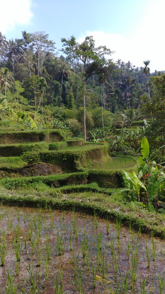 Pour ce premier jour de visite dans la région d’Ubud, on va commencer par parcourir de superbes rizières en terrasse. Bon, on voit bien que c’est très touristique. Mais ce sont quand même des vrais rizières privées. C’est bien-sûr préservé pour être le plus beau. Mais même en dehors de la ville ça ressemble bien a ça.