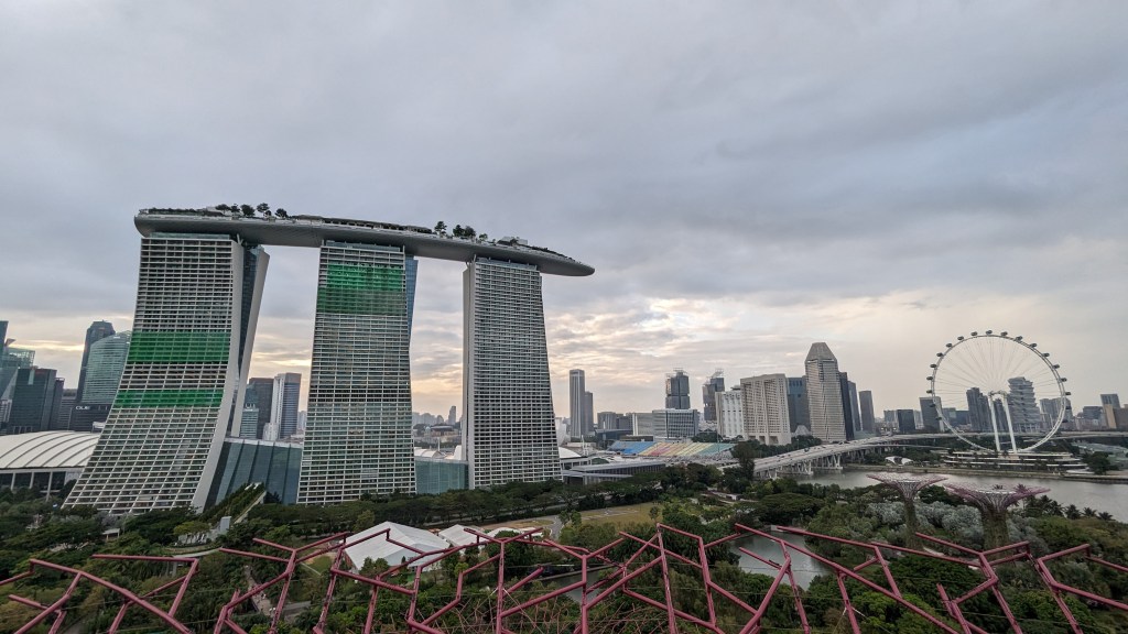 Juste derrière le Marina Bay Sands, ou juste devant, c’est vous qui voyez, se trouve les jardins de la baie. Dont les arbres artificiels (parmi de vrai je vous rassure) sont devenus l’un des emblèmes de la ville.