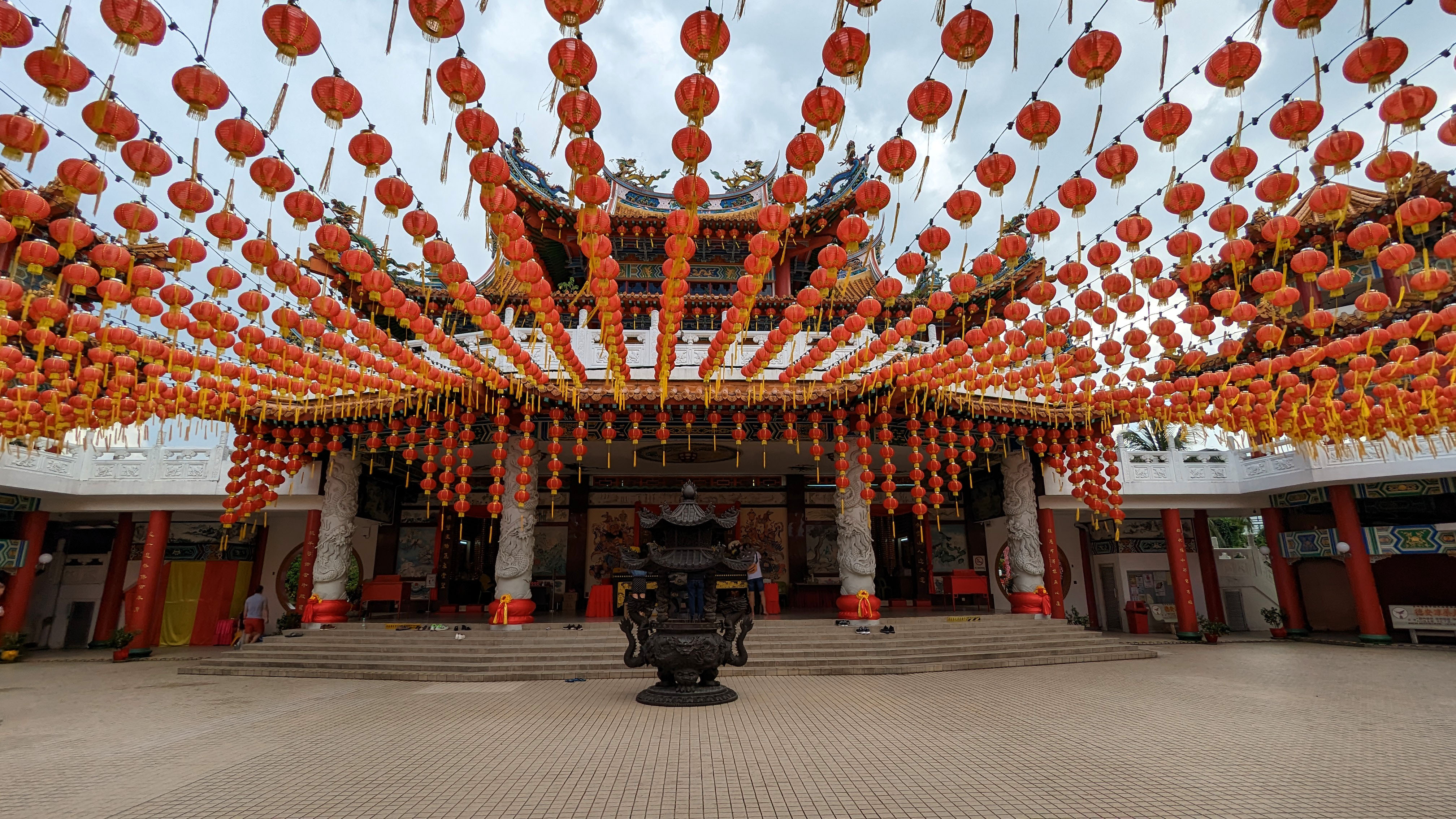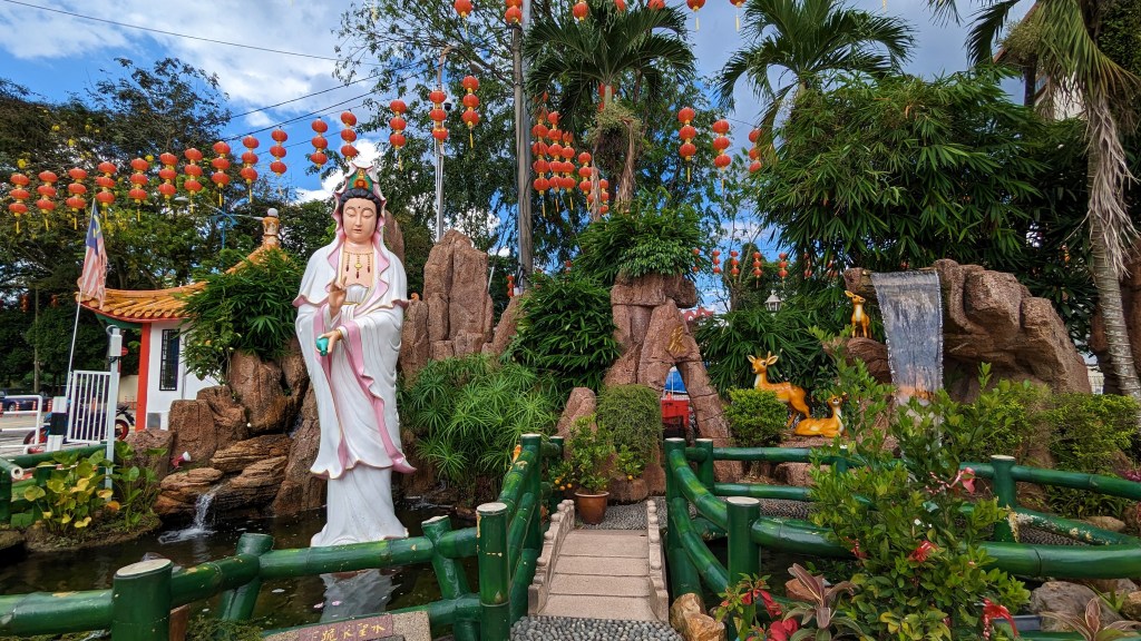 Thean Hou est un temple chinois dédié à la déesse de la mer Mazu. C’est même l’un des plus grands. Cela n’a pas un sens remarquable ici à Kuala Lumpur. Ce n’est pas vraiment une ville côtière. Même cependant fois nous ne sommes pas si loin que ça du détroit de Malacca. D’ailleurs Kuala Lumpur, ou « Confluent vaseux », tire son nom du fleuve Kelang et de son affluent le Gombak. Mais surtout, ce temple a été construit en 1987 par la communauté Haïnanèse de la ville. Haïnan est une grande île au sud de la Chine. Il est alors un peu plus compréhensible que les habitants vénèrent la déesse de la mer.