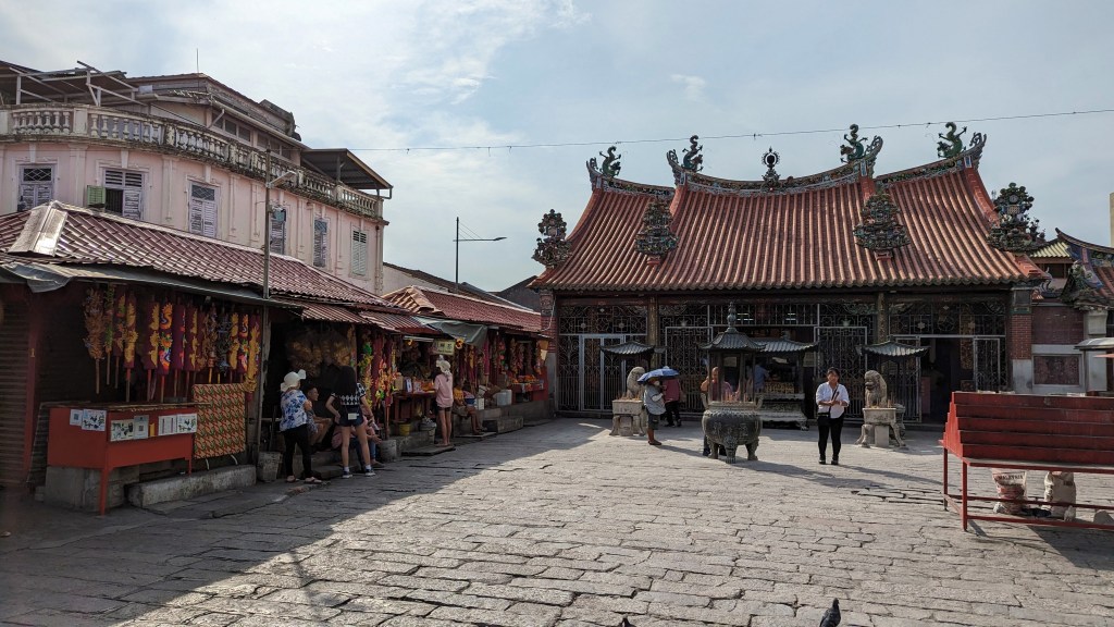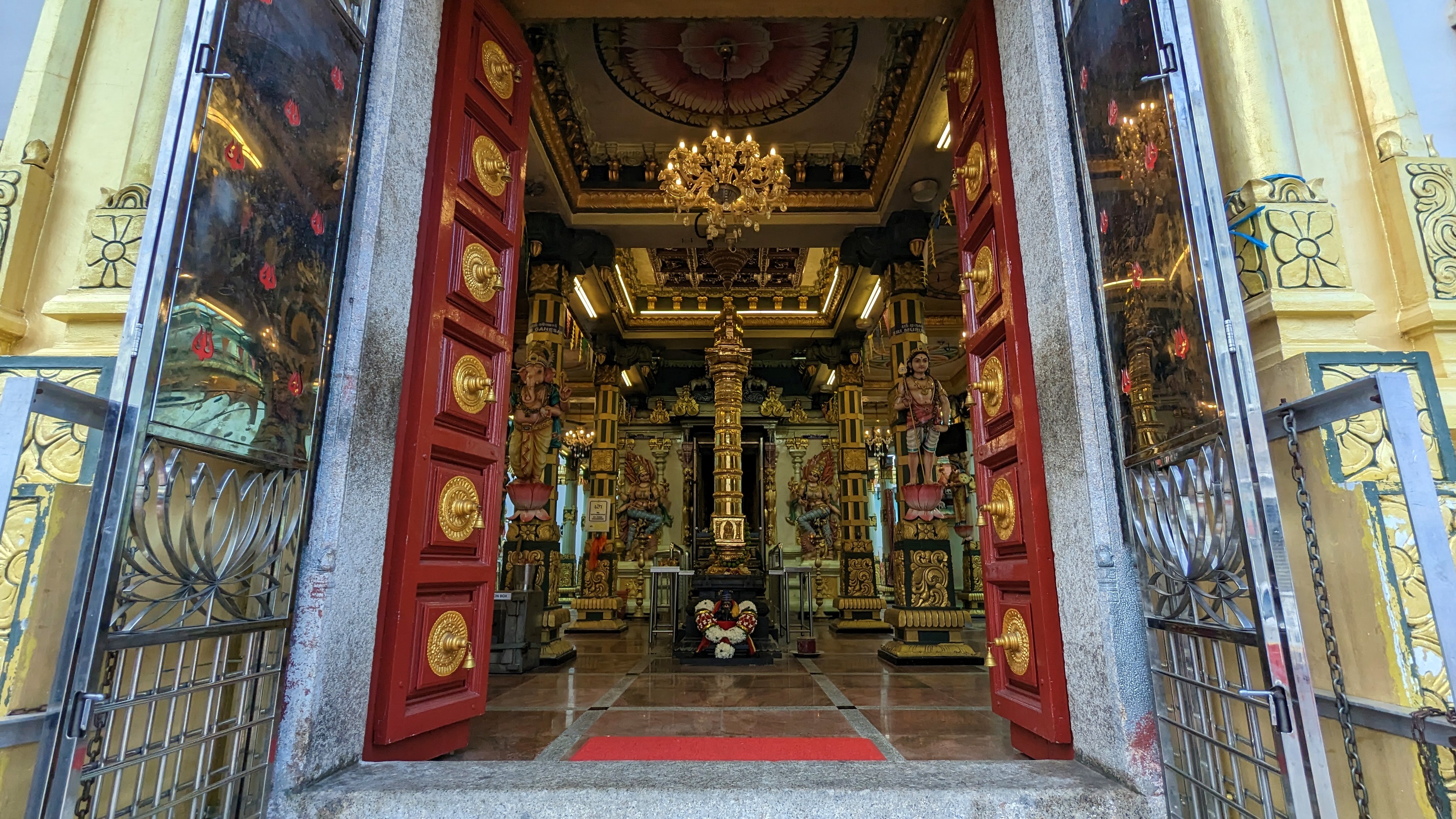 C’est maintenant au tour de l’hindouisme avec le mandir Sri Mahamariamman. C’est le plus ancien temple hindou de Penang mais le plus récent des établissements que nous venons de voir puisqu’il a été construit en 1833. Il est possible d’y rentrer mais depuis la rue opposée.