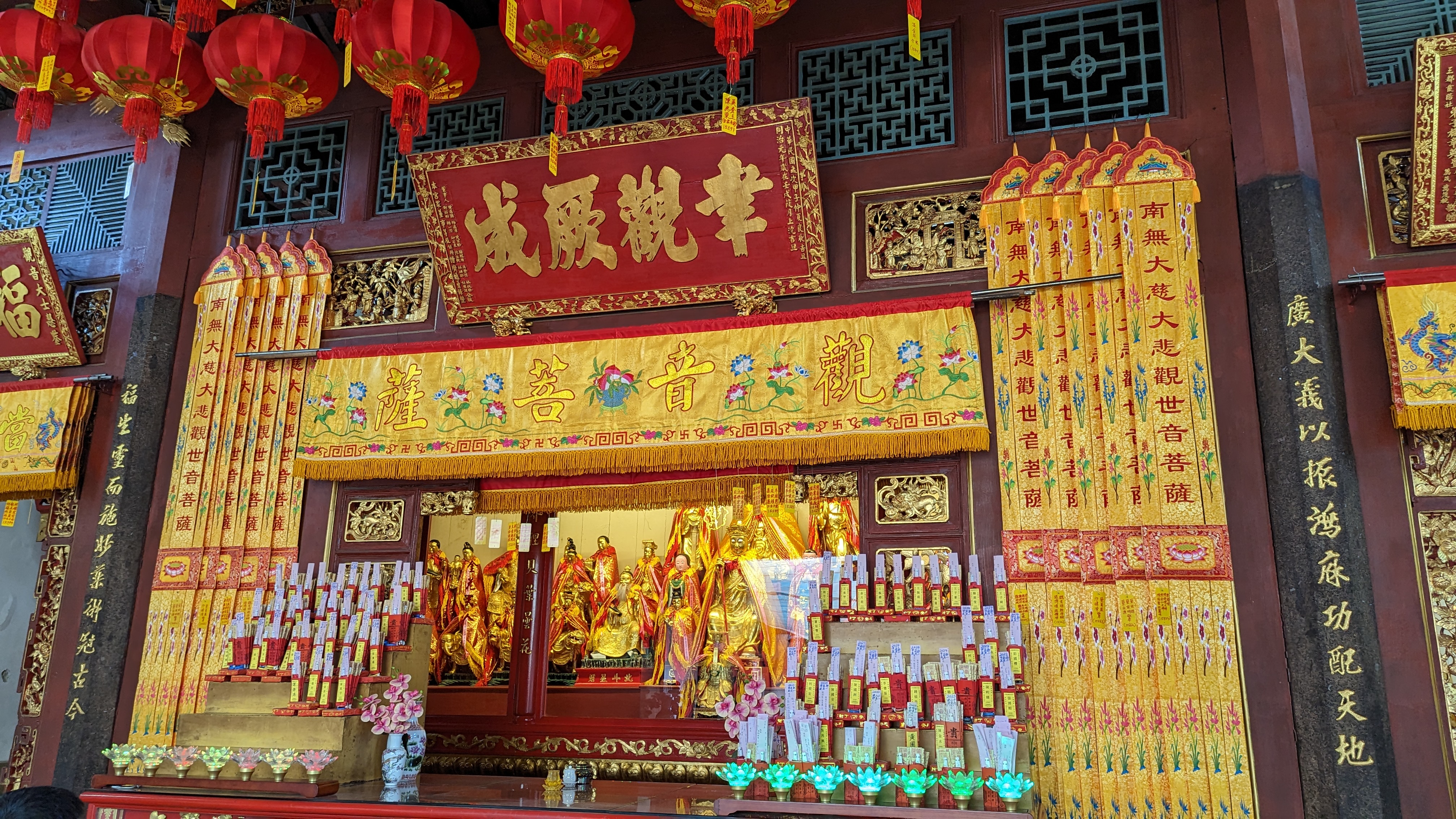 Nous poursuivons pour découvrir le temple Kuan Yin Teng. D’abord taoïste et dédié à la déesse de la mer Mazu en 1728. Il est depuis 1800 un temple bouddhiste dédié à Guanyin.