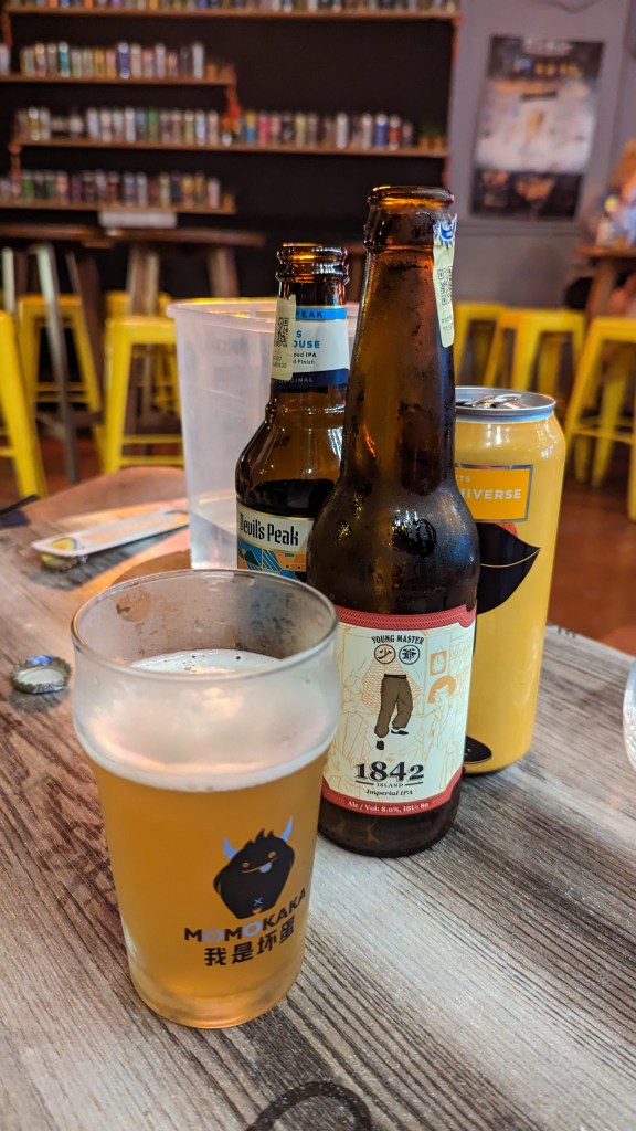 Bon et bien il se fait l’heure de l’apéro avec tout ça. Il est temps de se trouver un bar. Nous allons finalement trouver encore mieux, un bar à bière. Le Momokaka sur Armenian Street propose un très grand nombre de bières du monde. Le personnel est super sympa. Nous sommes plutôt bien installés. Il y a de quoi faire en bière. Du coup nous restons là un bon bout de temps à se partager bon nombre de breuvages.