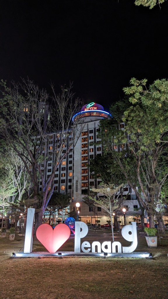 Comme je le disais hier, nous avons choisi de ne pas conserver l’appartement et de préférer les services d’un hôtel. Et nous en profitons donc pour nous rapprocher du centre historique de George Town, le chef-lieu de Penang. Nous avons longuement cherché hier. Finalement, nous avons opté pour l’hôtel Bayview à 75€ la nuit avec petit déjeuner. Nous galérons un peu pour trouver le parking. Obligé de demander à l’accueil et de faire 2 fois le tour du pâté de maison. Mais nous voici installés. Ça va, l’établissement porte bien son nom.
