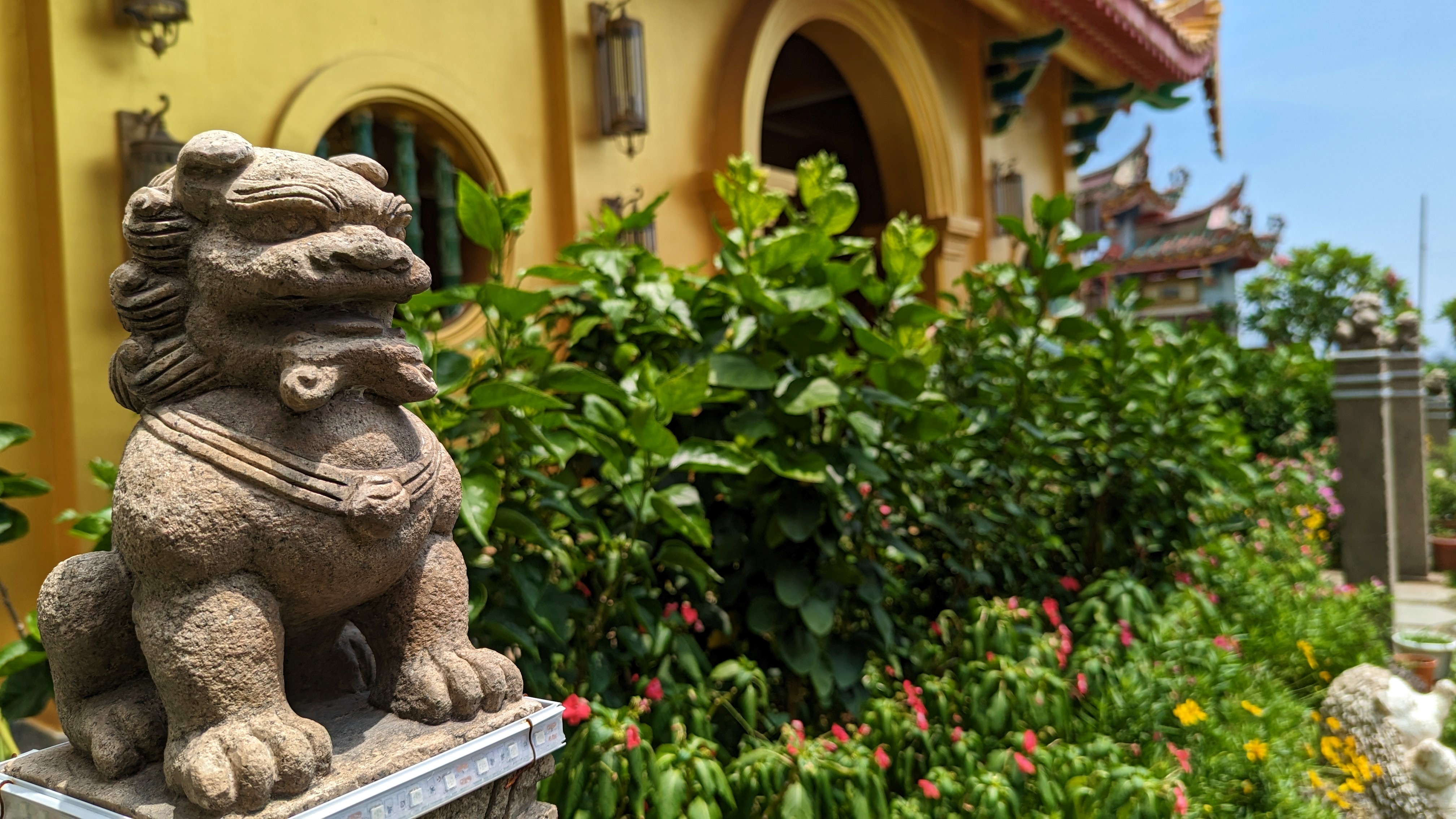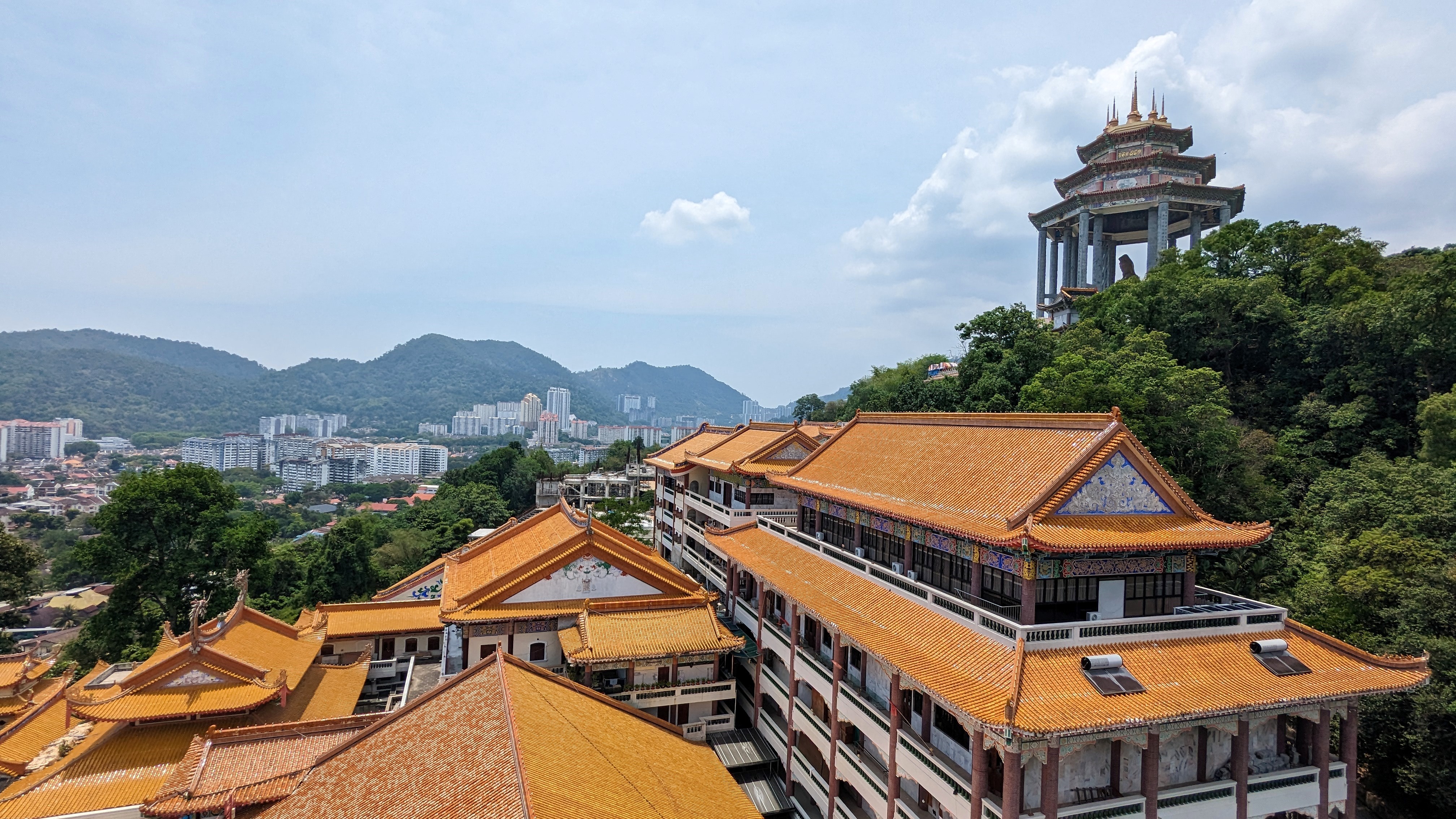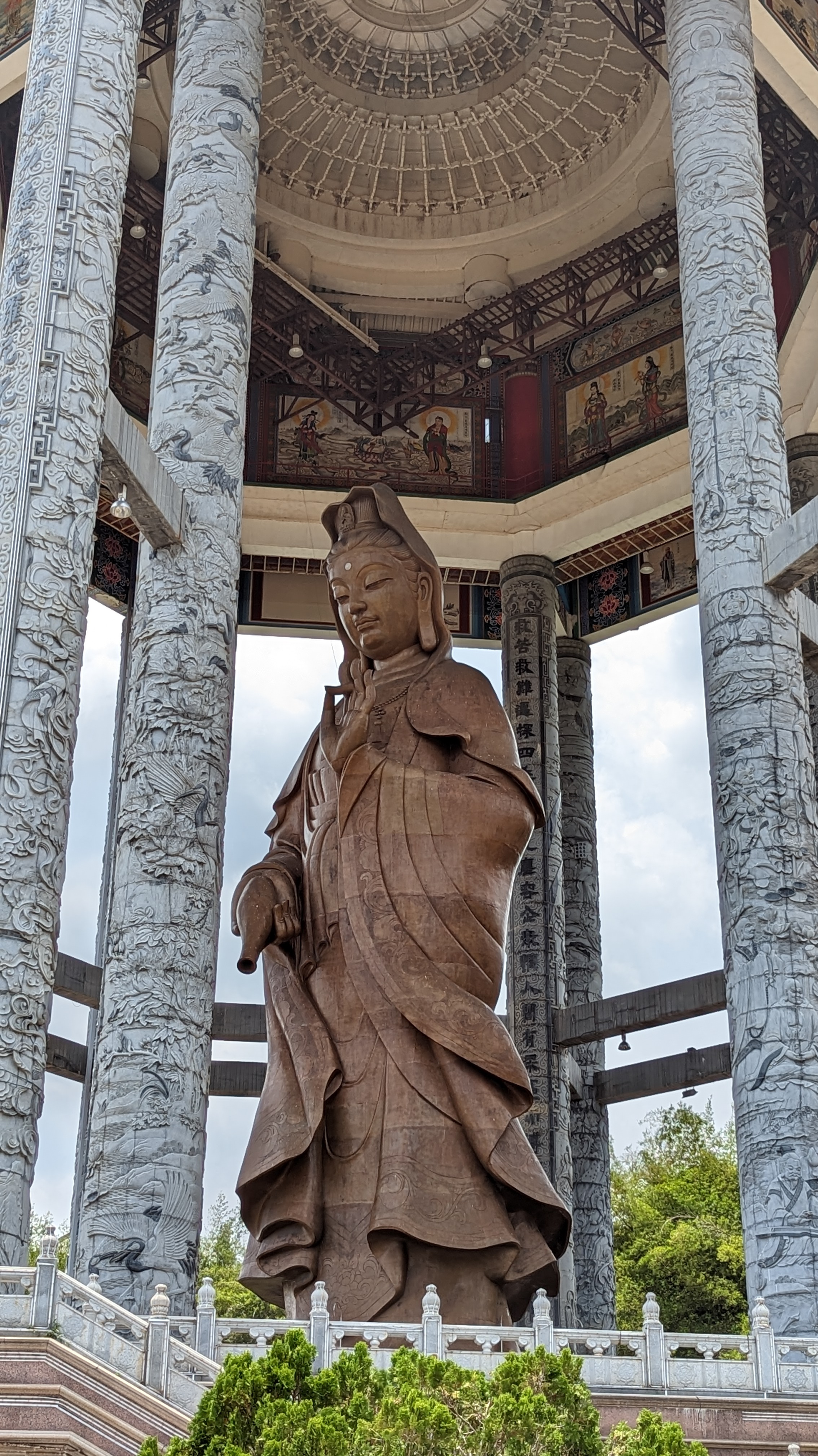Et la voici cette statue de près de 37m de la déesse Guanyin. Elle adopte la même posture que dans le petit temple de Gua Musang. Nous ne pouvons malheureusement pas entrer dans le pavillon pour être à ses pieds. Mais ça va, on la voit quand même 😂.