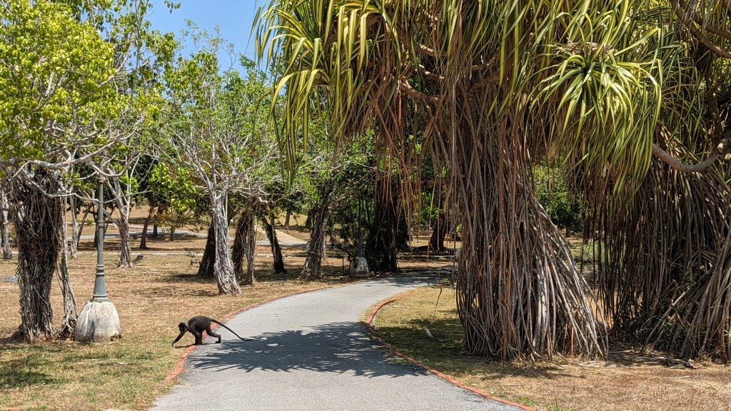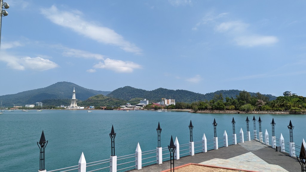 L’aigle est la mascotte de l’île. Pour une raison simple, j’ai eu l’occasion d’en voir dans les cieux. Alors ils ont eu l’idée de construire une grande statue à l’image de cet animal majestueux. Ce lieu est sur toutes les cartes touristiques comme si c’était un incontournable. Alors allons voir ce fameux piaf. Il se trouve sur la partie est de l’île, au niveau du terminal des ferrys. Comme nous sommes plutôt à l’ouest, au niveau de l’aéroport, nous appelons un Grab. Et je pense que nous arrivons sur la partie un peu plus ancienne de l’île. D’où la présence du port, premier moyen d’accès. Mais les plages ne sont pas aussi belles que celles de l’ouest et c’est donc bien moins touristique. J’ai le sentiment qu’ils ont justement construit ce point d’intérêt ici pour attirer les visiteurs or de leurs hôtels. Mais ça n’a pas un franc succès. Nous sommes plutôt tranquilles ici. Ils feraient mieux de construire un monorail ou quelque chose comme ça pour déplacer les touristes. Du coup, vide, ça donne une atmosphère pauvre. Mais c’est pourtant joli. Ça vaut le coup d’œil.