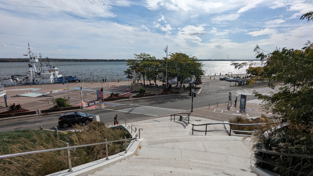 Nous partons maintenant en direction de Québec la ville. Mais nous choisissons de prendre notre temps. Nous faisons un premier arrêt à Trois-Rivières. Et ça tombe bien c’est l’heure de manger. Après un petit tour de la ville, nous nous installons donc dans un bar restaurant sur la rue animée. J’ai pris un burger au bacon fumé au bois d’érable 🤤 un délice.