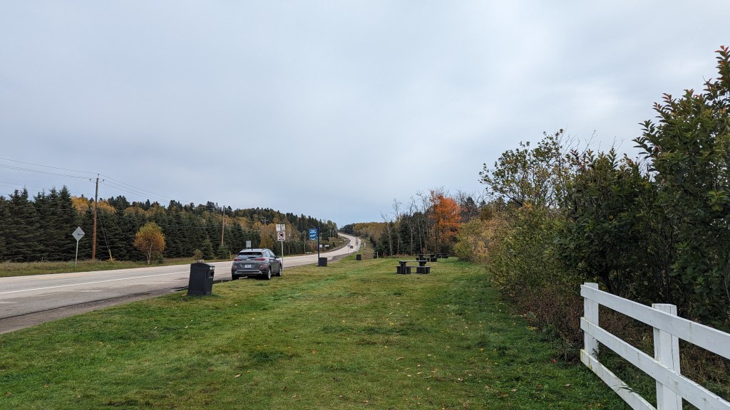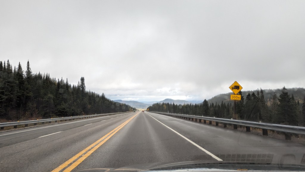 Nous avons maintenant pas mal de route à faire jusqu’à Tadoussac. Mais c’est vraiment magnifique avec les couleurs d’automne. Il y a parfois des panneaux indiquant un point de vue. Et à chaque fois nous sommes tombés sur un parking sans aucun panorama. Une belle arnaque donc. Au moins, sur l’un des arrêts, nous avons pu en profiter pour faire le plein.