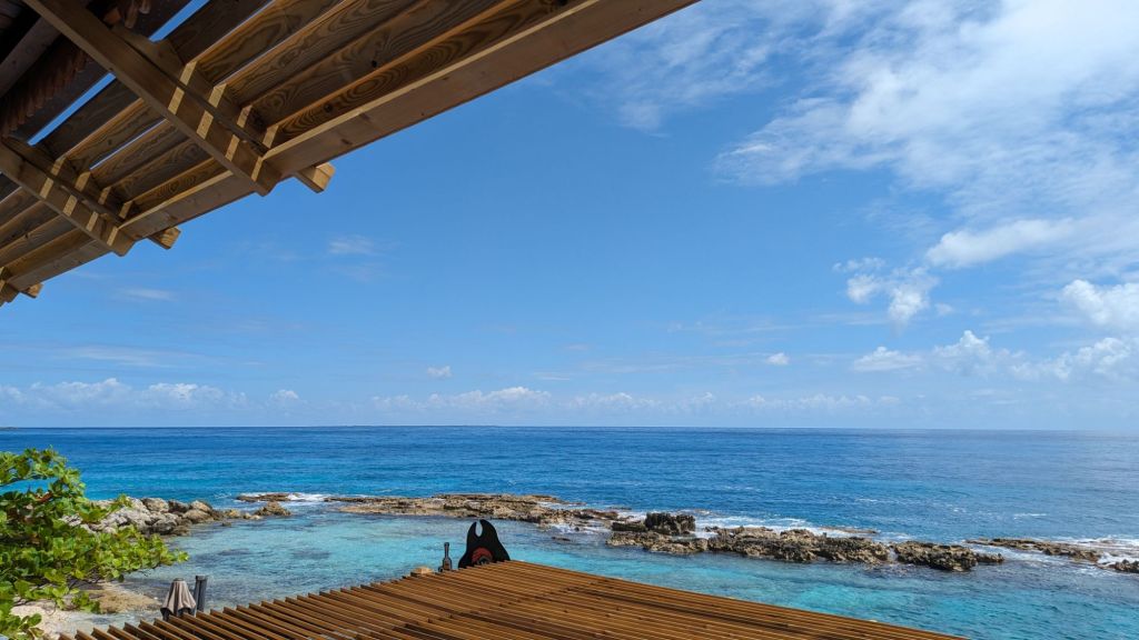 Nous poursuivons notre route mais avant les châteaux, nous faisons escale chez les pirates. On nous a en effet conseillé La Rhumerie des Pirates. Et ça tombe bien, c’est juste avant la pointe. Nous avons beaucoup de chance d’être pris sans réservation et en plus à la meilleure place, au bord de la terrasse. Le petit rhum coco, le poisson, tout était bon.