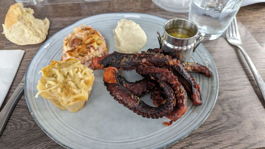 Nous terminons la traversée pour arriver sur la côte Ouest de l’île. Nous allons manger au restaurant « Le Rocher de Malendure ». Encore un nom bien trouvé car nous sommes sur un promontoire rocheux qui donne sur la plage de Malendure. L’occasion de goûter le Chatrou. Non ce n’est pas un chat roux. C’est un poulpe des Antilles et c’est très bon. Surtout la sauce au beurre et au piment, un régal.