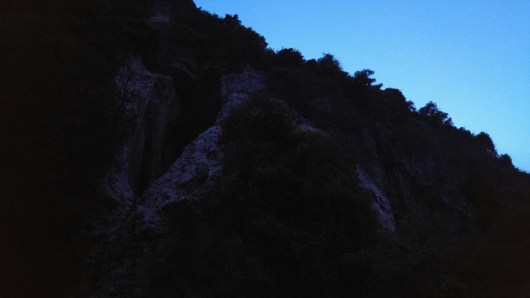 La colline est aussi connu pour ses grottes. Dont la grottes des diables où les Khmers rouges exécutaient leurs victimes. Mais aussi la grotte des chauves-souris. Tous les soirs quand la nuit tombe, une nuée de 30.000 chauve-souris s’échappe de cette grande cavité en file indienne. Pour nous celà a duré 30 min environ. On ne voit malheureusement pas les bestioles sur la photo, il fait vite sombre ici. Mais on voit bien l’ énorme grotte d’où elles s’échappent.