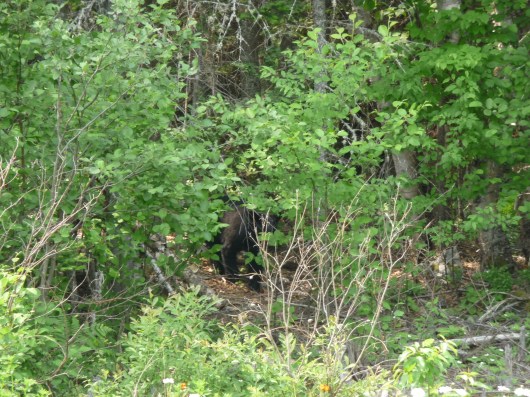 Et oui ça y est, nous avons vu un ours. Un ourson en fait. Il était là tout pépère le compère sur le bord de la route. Je ne l’avais pas vu en conduisant, il ne bougeait pas. C’est Tetsel qui l’a vu quand on est passé juste à coté et qu’il a donc bougé.
