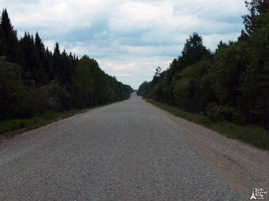 Oh de la route goudronnée, nous voila au Québec. Des maisons, des voitures, des gens ! Le retour à la civilisation après 150 km de piste.