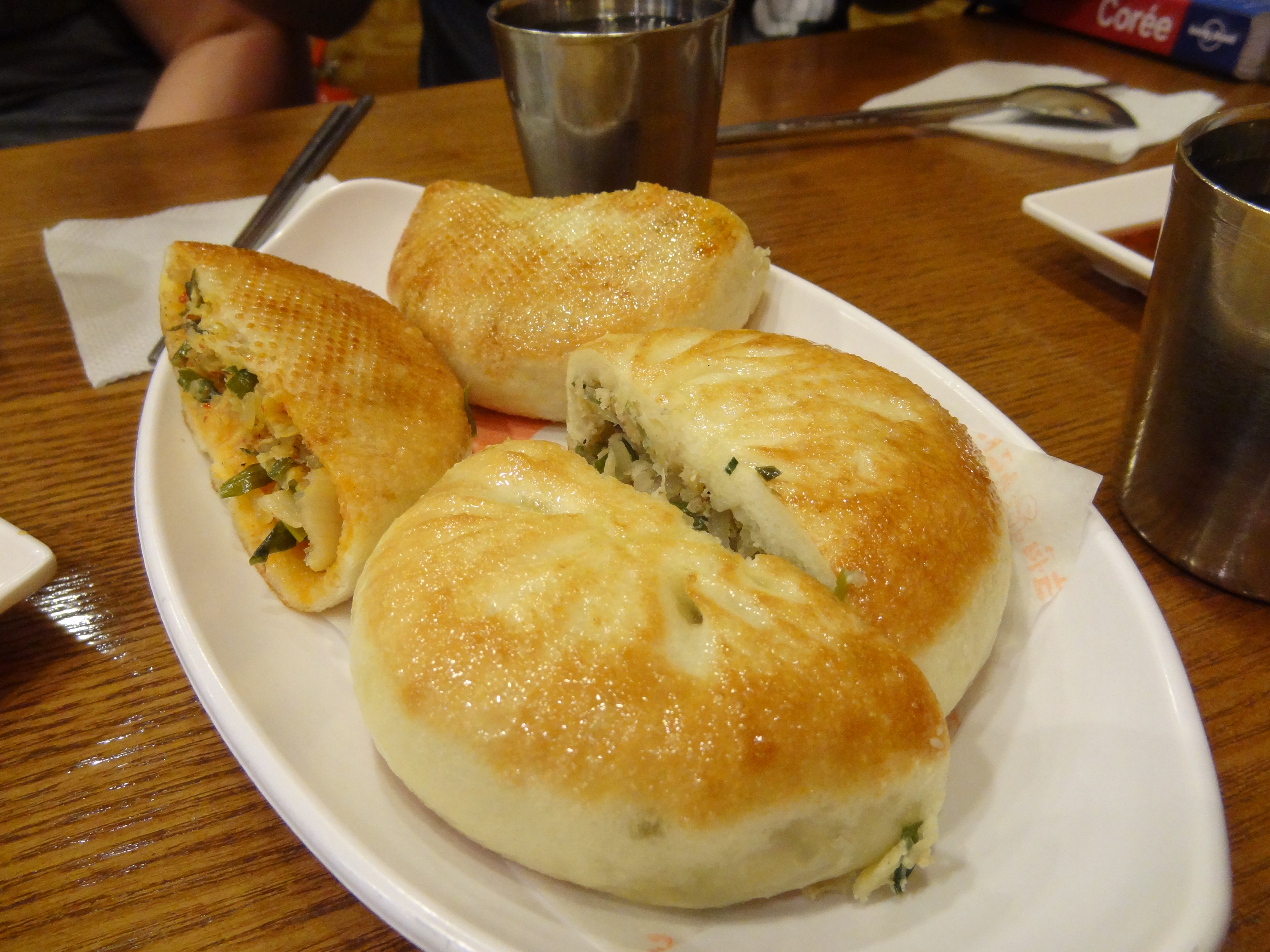 Nous avons terminés les visites prévues et même un petit bonus super sympa. Bon, je n’ai plus le nom en tête (en même temps, je vous défi de retenir un nom coréen. C’est déjà impossible à prononcer …), mais vous verrez quand j’en ferais un post, c’était magnifique. Après cela nous décidons donc de continuer notre route jusqu’au point suivant. Mais là, comme il est plus tard, nous mangeons sur l’autoroute. C’est l’occasion de gouter des trucs bizarre, alors j’ai pris de l’étoile de mer séchée dans la supérette. Bon, c’est une branche d’arbre avec un goût de poisson… J’ai aussi pris une sorte de hot dog frit. Au Japon, c’était le fameux French Dog. Toujours pas compris quel rapport avec « french ». A part » French Fries » peut être, mais ce n’est pas logique. Bref, ici ils appellent ça Corn Dog. Il n’y avait pas de chocolat mais il me dit de rouler la brochette dans du sucre. Bien sûr, je l’ai fait. Mais bon, au final, on ne sent pas la saucisse. C’était donc comme manger un gros churros.