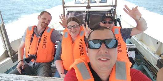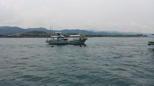 Allez, je profite du trajet retour en bateau pour vous le partager en live. Hier soir en regardant une carte touristique, on a vu des logos de dauphin dans la région. Alors on a regardé sur Internet, et effectivement on pouvait faire une excursion dauphin : ). Alors nous voici. Il est midi et on a le bateau pour nous tout seul.