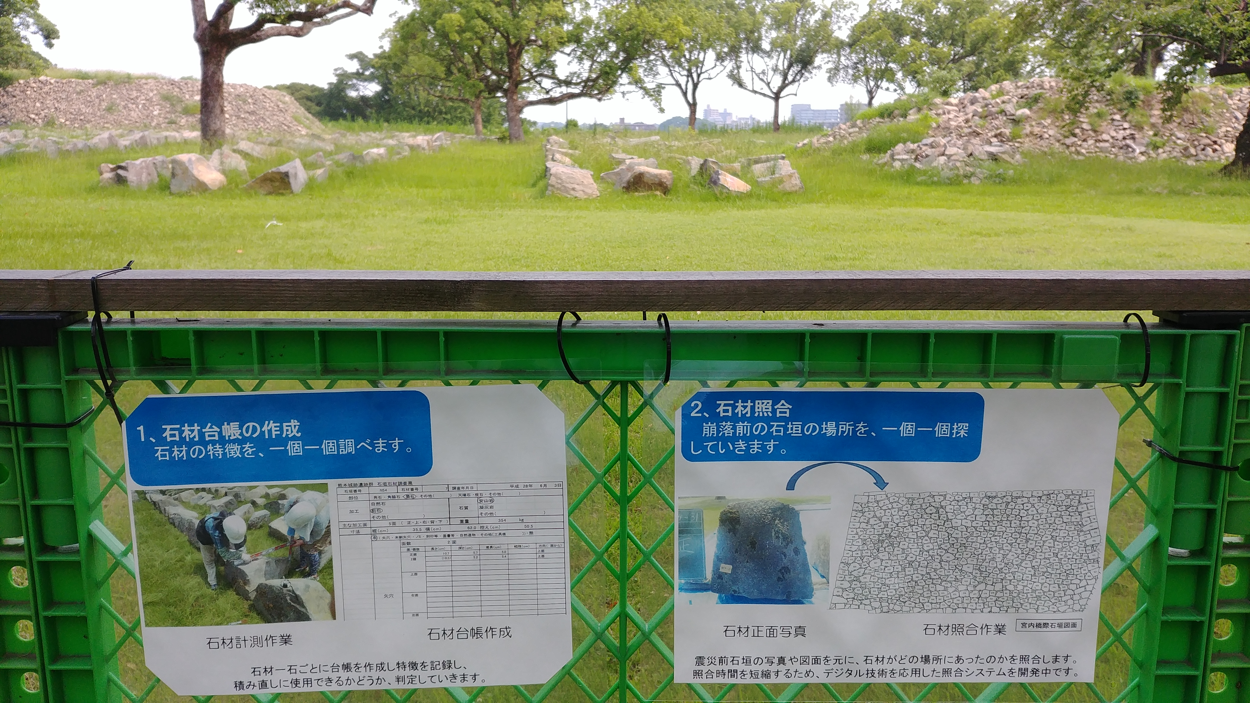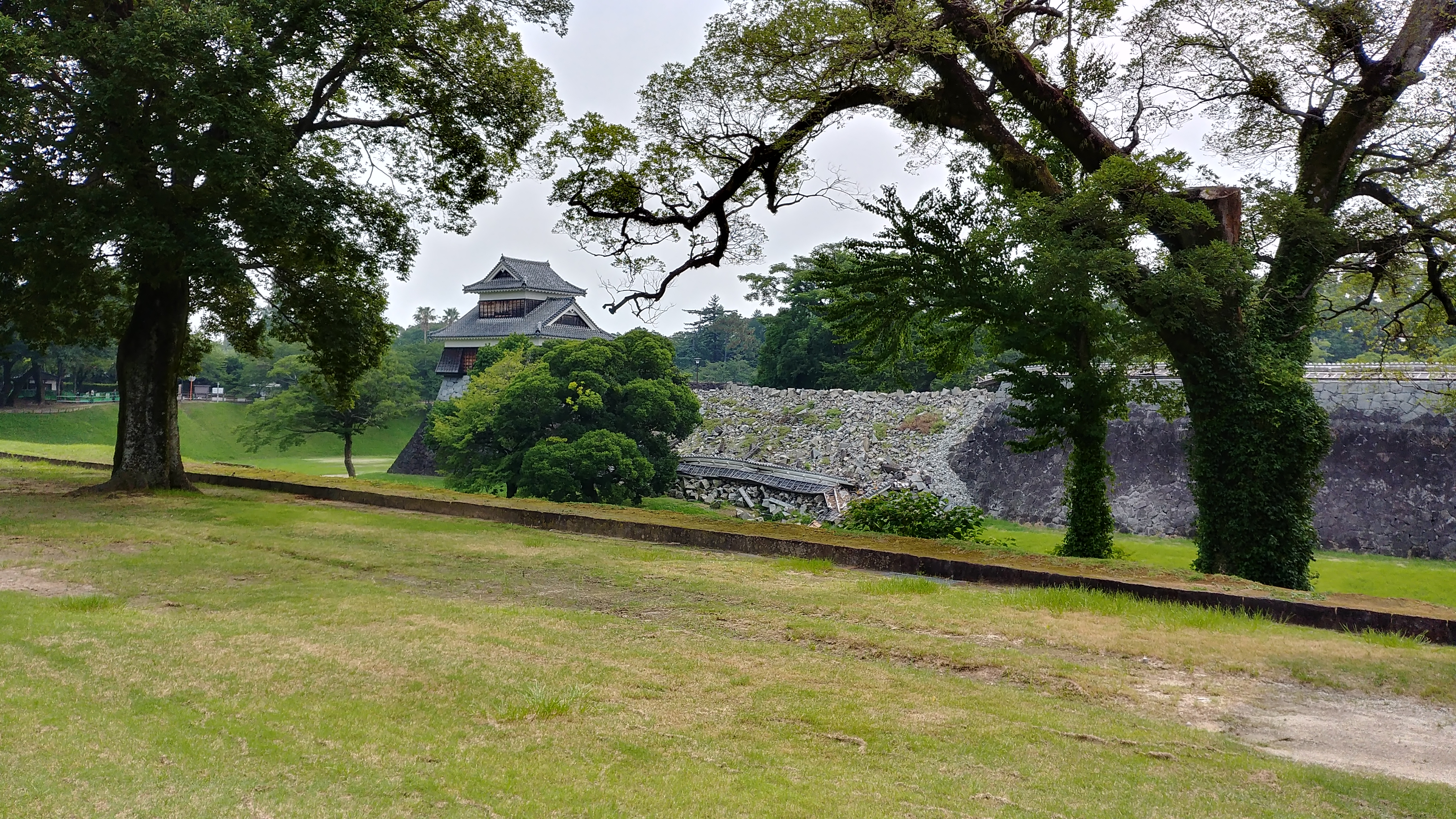 Après Kagoshima nous sommes directement remonté à Kumamoto pour y dormir mercredi soir. Ce jeudi matin nous sommes donc partis visiter le chateau de Kumamoto. Helas, le chateau n’a pas vraiment apprécié le tremblement de terre de 2016. Le ‘bien culturel important’, classé parmis les 3 plus beaux châteaux du Japon, est partiellement détruit.