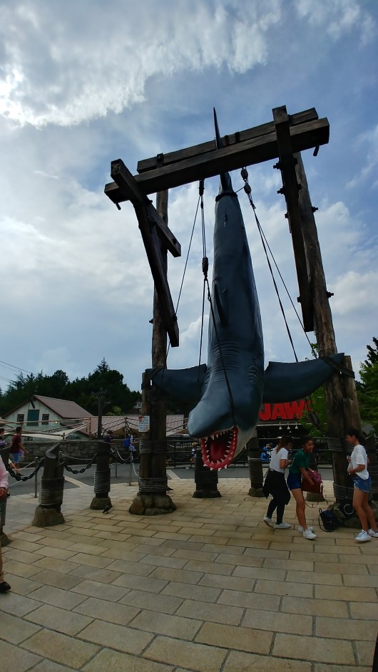 On commence direct, Jo et moi, par suivre la coutume Japonaise. On s’achète le même T-Shirt. 40€ le T-Shirt ! Bon ok on a compris, cette journée va nous coûter cher. Mais tout le staff ne cessait de nous féliciter. « Nice T-Shirts ». « Nice crew »… Ils ont appréciés qu’on fasse ce petit jeu. Quand les Japonais vont dans un parc entre pote ou en famille, ils s’habillent tous pareil pour se reconnaître et se faire reconnaître. Enfin j’imagine.